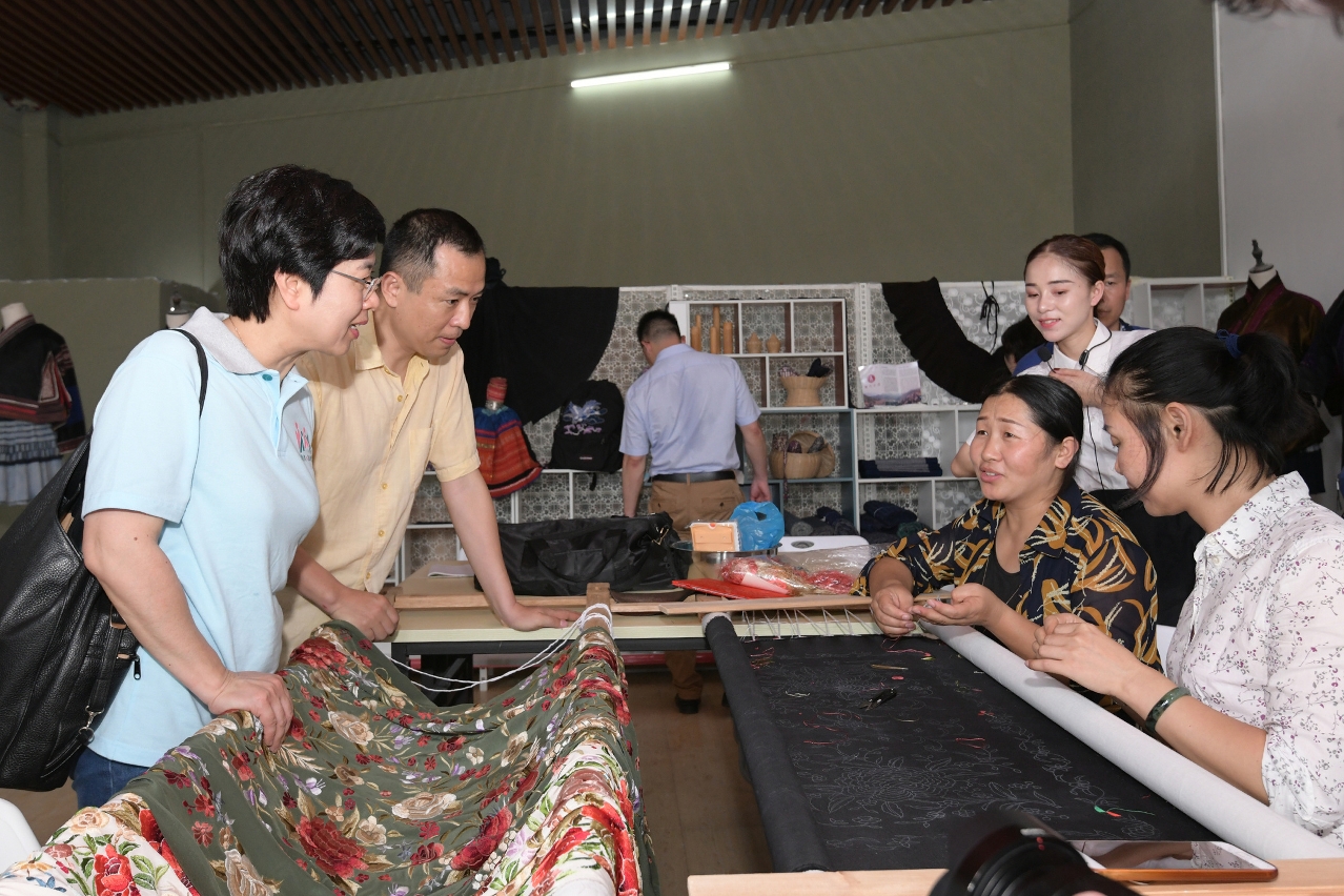 De seguida, Sónia Chan e os restantes membros da delegação, incluindo os estudantes universitários e membros da liga juvenil, liderados pelo vice-chefe da delegação, Luo Xiaolong, deslocaram-se à vila de Luan Li, onde visitaram a sala de exposições da vila de etnia Dong para conhecer as técnicas tradicionais de artesanato com tecidos feitos com batik e gaze. No ponto mais turístico da aldeia, assistiram ainda a um espectáculo de danças folclóricas e visitaram vários moradores da aldeia, conhecendo assim o quotidiano desta minoria étnica.