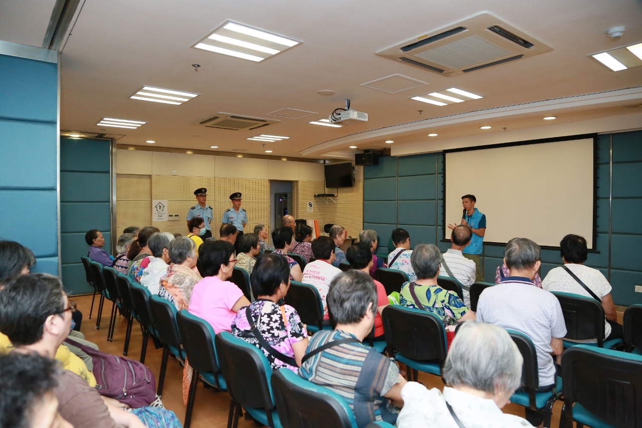Estando presentes, nesta actividades, o Chefe-Ajundante, Chan Kuok Tong, o Chefe de Primeira, Chan Chi Wai, a Subcomissária Lei Ka I e o Chefe Assistente Wong Chong Seng, todos desta escola, bem como o Técnico Superior do IASM, Lam Chi Hong e o Técnico Superior da Direcção dos Serviços Meterológicos e Geofísicos, Tam Chan Wai. Os participantes incluem os membros e os trabalhadores do Complexo de Apoio à Família e de Serviço Comunitário de Seac Pai Van da União Geral das Associações dos Moradores de Macau, bem como os moradores inscritos, que perfazem um total de cerca de 70 pessoas.