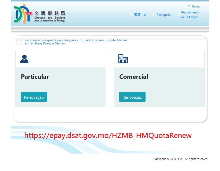 A Direcção dos Serviços para os Assuntos de Tráfego (DSAT), a partir de 22 de Agosto (quinta-feira) e até às 17 horas do dia 4 de Setembro de 2019 (quarta-feira), aceitará, por uma única vez, o pedido de renovação de qualquer das 600 quotas regulares destinadas à circulação de automóveis ligeiros de Macau entre Hong Kong e Macau e pertencentes a entidades particulares e comerciais, sendo que o prazo de validade das quotas renovadas será de três anos.