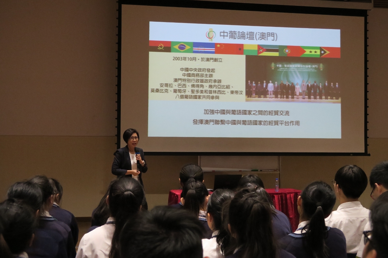 O Gabinete de Apoio do Secretariado Permanente do Fórum de Macau organizou, no dia 11 de Setembro, na Escola Secundária Luso-Chinesa de Luís Gonzaga Gomes, uma sessão de “Diálogo Aberto entre a Coordenadora do Gabinete de Apoio do Secretariado Permanente do Fórum de Macau e os Jovens”. A Coordenadora do Gabinete de Apoio, Dr.ª Mok Iun Lei, teve a oportunidade de dialogar abertamente com mais de 50 alunos que frequentam o curso de língua portuguesa. A Coordenadora do Gabinete auscultou as opiniões dos alunos no sentido de aprofundar a comunicação e o intercâmbio com jovens de Macau. A Sessão também contou com a presença do Director desta escola, Dr. Leong Iao Cheng.