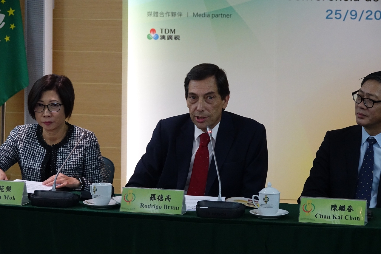 A 11ª Semana Cultural da China e dos Países de Língua Portuguesa, organizada pelo Secretariado Permanente do Fórum para a Cooperação Económica e Comercial entre a China e os Países de Língua Portuguesa (Macau), será realizada entre os dias 12 e 18 de Outubro de 2019. O evento contará com 5 actividades de relevo, nomeadamente Espectáculos de Música e Dança de Artistas da China e dos Países de Língua Portuguesa, Exposições de Artes Plásticas dos Artistas da China e dos Países de Língua Portuguesa, Mostra de Teatro dos Países e Regiões da Língua Portuguesa, Feira de Artesanato da China e dos Países de Língua Portuguesa, bem como os “Sabores do Mundo” dos Países de Língua Portuguesa. Para o efeito, o organizador deste evento, o Secretariado Permanente do Fórum de Macau, realizou uma Conferência de Imprensa no dia 25 de Setembro na Sala Multifuncional, que contou com a participação do Secretariado-Geral Adjunto, Dr. Rodrigo Brum e a Coordenadora do Gabinete de Apoio, Dr.ª Mok Iun Lei, os quais apresentaram os métodos de preparação desta edição.