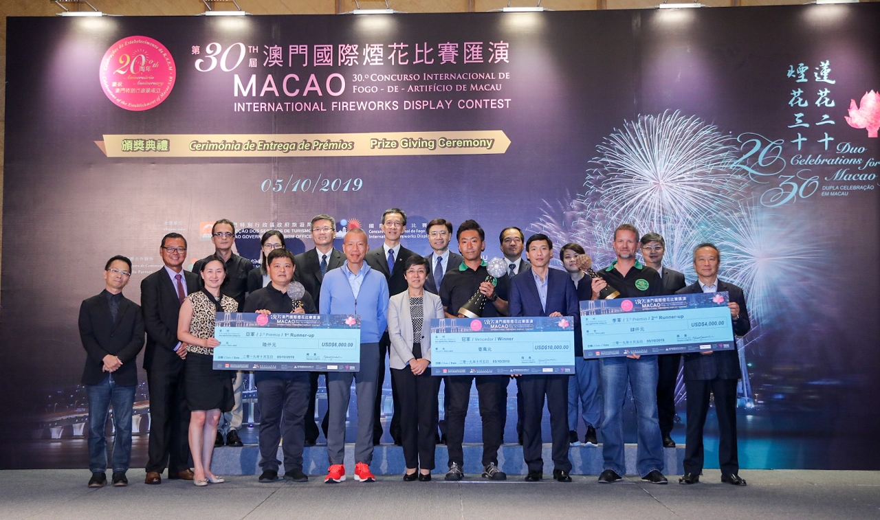 O 30.° Concurso Internacional de Fogo-de-Artifício de Macau (CIFAM), que decorreu sob o tema “Dupla Celebração em Macau”, fechou esta noite (dia 5) o pano, tendo apresentado 12 equipas pirotécnicas que mediram forças para ficar entre os primeiros três classificados. A companhia pirotécnica do Japão, Marutamaya Ogatsu Fireworks Co., Ltd., venceu o primeiro lugar, e as companhias pirotécnicas da China (Liuyang New Year Fireworks Trading Co., Ltd.) e de França (SAS BREZAC Artifices) ganharam, respectivamente, o segundo e terceiro lugares da edição deste ano.