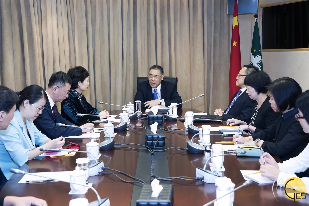 Estiveram também no encontro o director substituto dos Serviços de Estudo de Políticas e Desenvolvimento Regional, Ung Hai Ian, o director e a subdirectora do departamento do desenvolvimento e pesquisa do CCPIT , Nie Wenhui e Mina, respectivamente, bem como, o representante do CCPIT em Macau, Cui Wenlong.