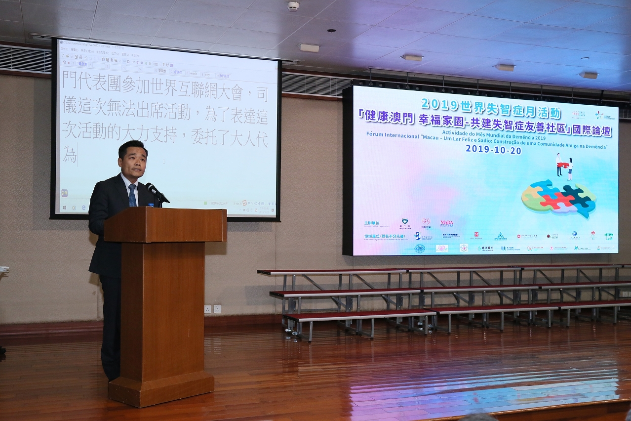 Segundo os dados da OMS, em 2019, foram registados mais de 50 milhões de doentes com demência. Para responder ao apelo lançado pela Associação Internacional de Demência, o Fórum internacional “Macau - Um Lar Feliz e Sadio - Construção Conjunta de Uma Comunidade de Macau Amigável da Demência 2019”, sob a liderança do Secretário para os Assuntos Sociais e Cultura, organizado pelos Serviços de Saúde, Instituto da Acção Social (IAS), Associação da Doença de Alzheimer de Macau e diversas associações de Macau, decorreu no domingo (dia 20 de Outubro) no Centro de Saúde da Areia Preta, foi efectuado de modo a fortalecer os conhecimentos de profissionais do sector de medicina, educação e serviços sociais, sobre a construção de uma comunidade amiga da demência. Cerca de 300 participantes estiveram presentes na actividade.