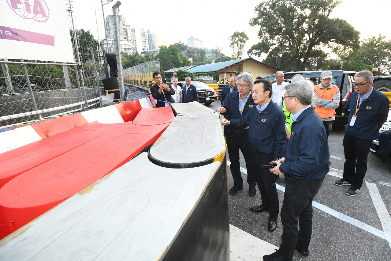 O secretário Alexis Tam, o presidente do Instituto do Desporto e coordenador da COGPM, Pun Weng Kun, e os representantes da FIA procederam à inspecção do Circuito da Guia e cumprimentaram os trabalhadores. Durante a inspecção, o secretário fez questão em inteirar-se sobre as medidas de segurança e outros assuntos relacionados com a pista.