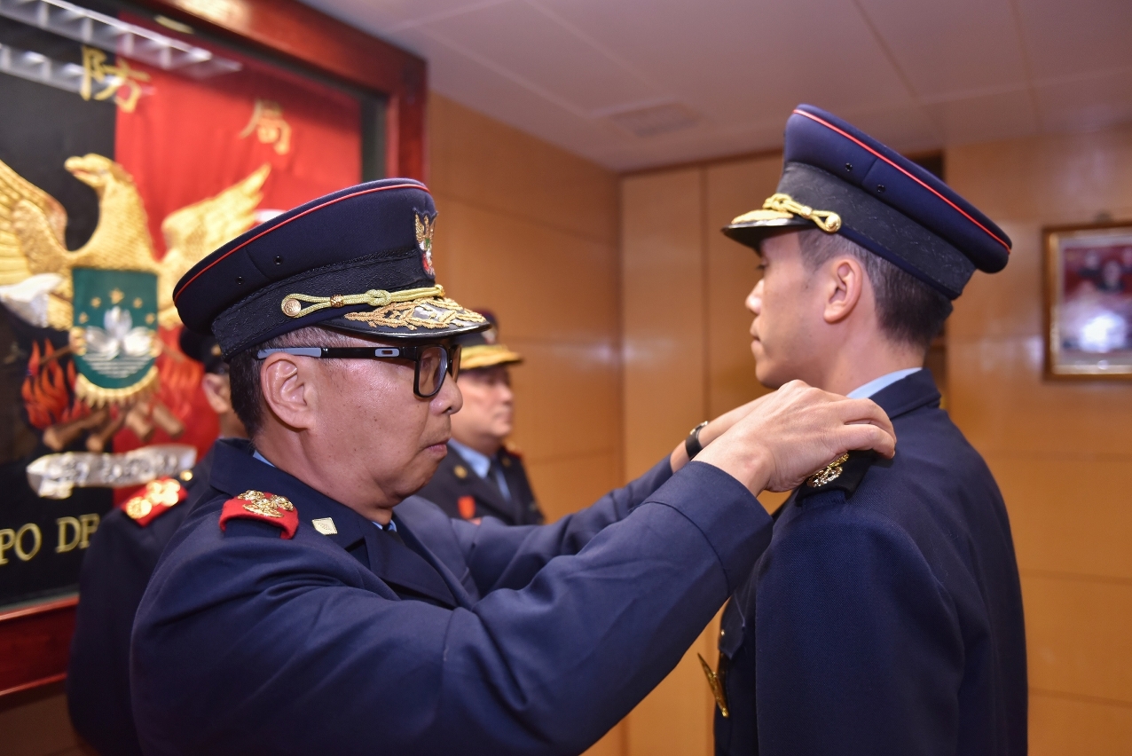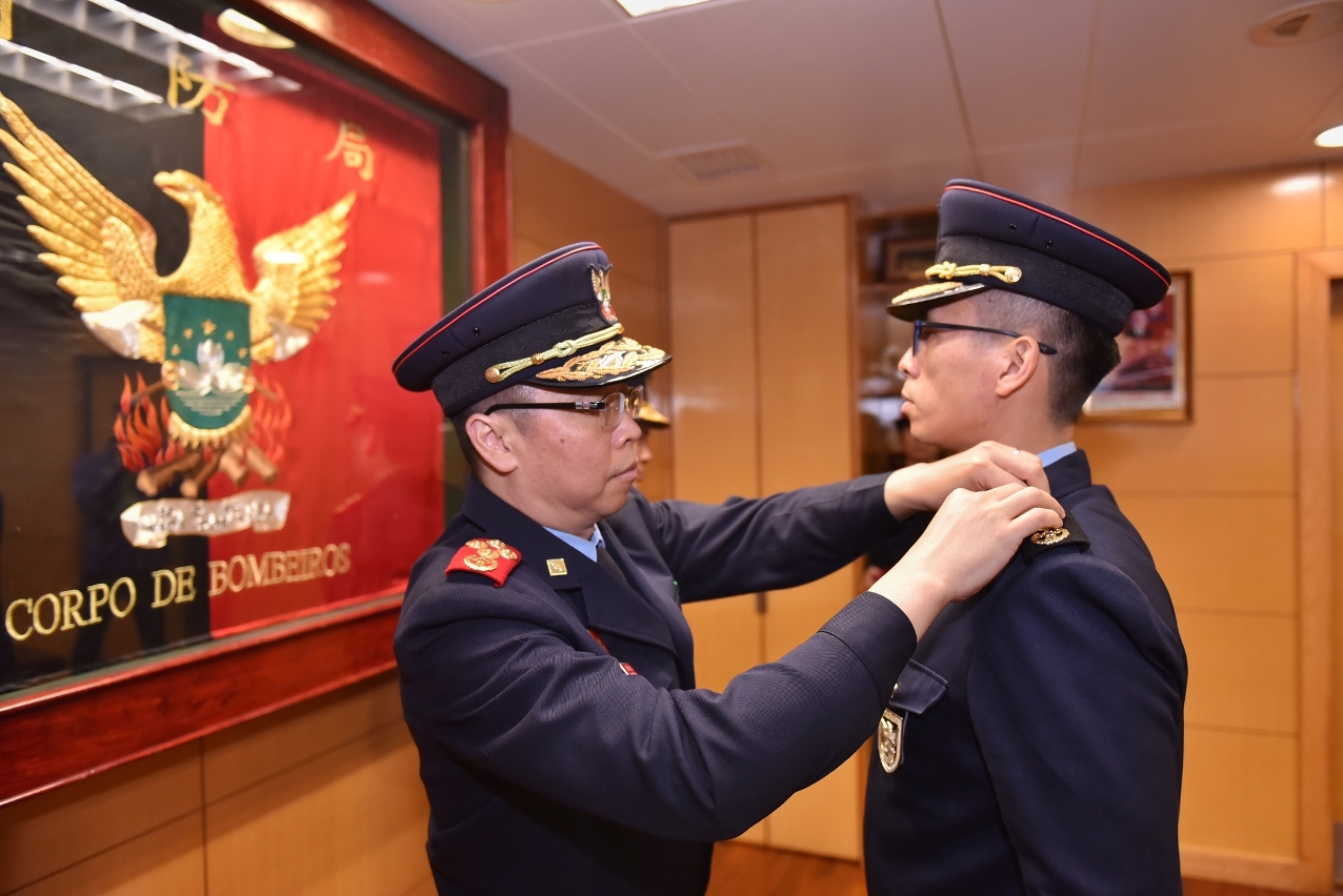 O Corpo de Bombeiros (CB) efectuou hoje (3 de Janeiro de 2020), a cerimónia de promoção ao posto de chefe-ajudante no Comando do Comando e Posto Operacional do Lago Sai Van do CB.