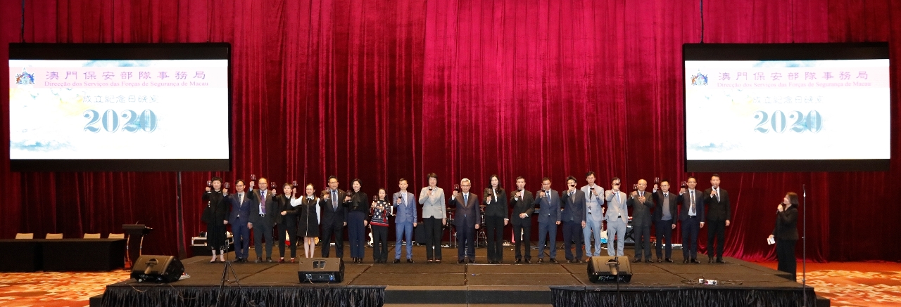 O jantar contou também com a participação do Secretário para a Segurança, Wong Sio Chak, do Comandante-geral dos Serviços de Polícia Unitários, Leong Man Cheong, do Director-geral dos Serviços de Alfândega, Vong Man Chong, do Director-geral dos Serviços de Ligação para os Assuntos Policiais do Gabinete de Ligação do Governo Popular Central na RAEM, Yu Chengping, dos membros da Comissão de Fiscalização da Disciplina das Forças e Serviços de Segurança de Macau, do pessoal da direcção e chefia da área da segurança e dos outros serviços de cooperação. O mesmo foi animado com deslumbrantes espectáculos da banda de música, do grupo de dança e do vencedor de “Boas vozes” do CPSP, tendo contado também com a participação de uma outra banda de música diligenciada pelo pessoal das Forças de Segurança.