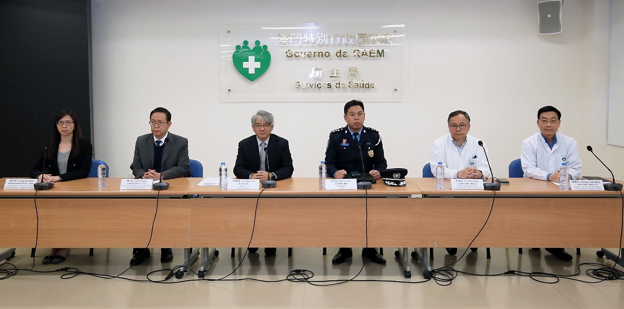 A conferência de imprensa teve a presença do Director dos Serviços de Saúde, Dr. Lei Chin Ion, Chefe do Departamento de Planeamento de Operações, Dr. Chio Song Un, Chefe e Coordenadora do Centro de Prevenção e Controlo da Doença, Dr. Lam Chong e Dra. Leong Iek hou, Médico Adjunto da Direcção do Centro Hospitalar Conde de São Januário, Dr. Lei Wai Seng e Responsável de Pneumologia, Dr. Cheong Tak Hong