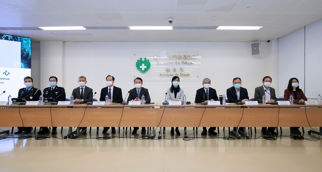 Na conferência de imprensa estiveram presentes: a Secretária para os Assuntos Sociais e Cultura, Ao Ieong U, o Secretário para a Economia e Finanças, Lei Wai Nong, o Director dos Serviços de Saúde, Lei Chin Ion, o Director da DSF, Iong Kong Leong, o Director da DSE, Tai Kin Ip, o Médico-Adjunto do CHCSJ, Dr. Lei Wai Seng, o Responsável do CDC, Dr. Lam Chong, a Chefe do Departamento de Licenciamento e Inspecção da DST, Chan Lou, o Chefe do Departamento de Fiscalização Alfandegária dos Postos Fronteiriços, Substituto. Ian Chan Un, o Chefe da Divisão de Operações e Comunicações da PSP, Ma Chio Hong.