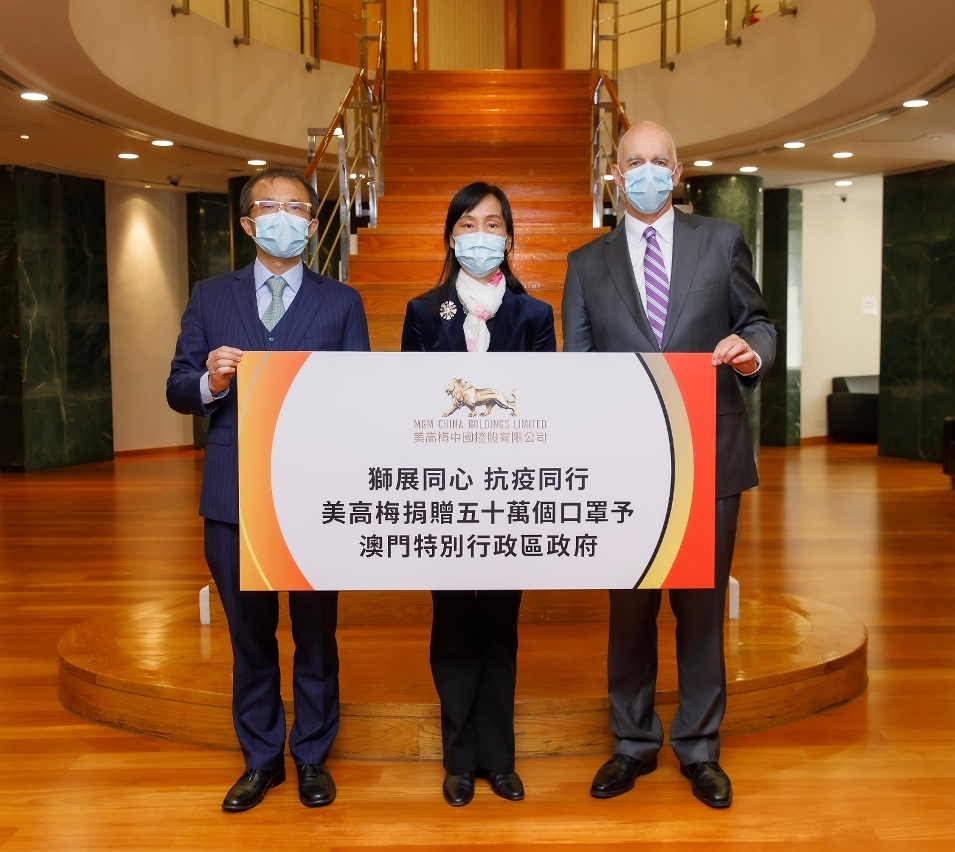 O Governo da RAEM agradece a doação generosa das máscaras pela MGM China Holdings Limited que revela a responsabilidade social das empresas, dando assim grande apoio às medidas tomadas pelas autoridades para responder à epidemia, contribuindo para os trabalhos de prevenção.