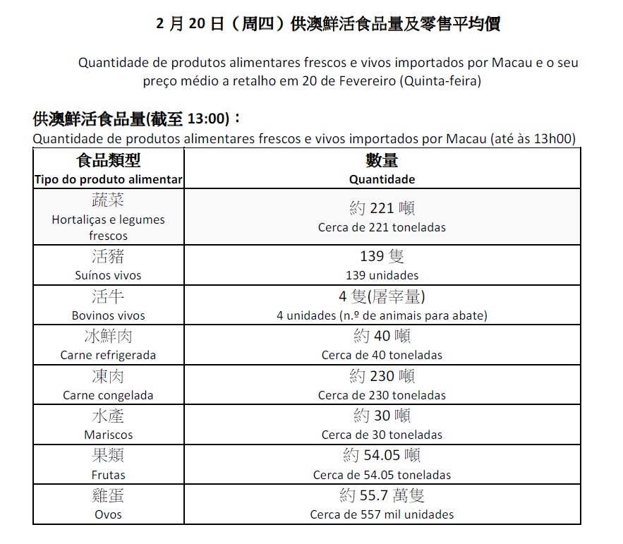(Os cidadãos podem consultar ainda os preços de outros itens através do website do IAM: https://www.iam.gov.mo/p/onedaymarketvalue/menulist/)