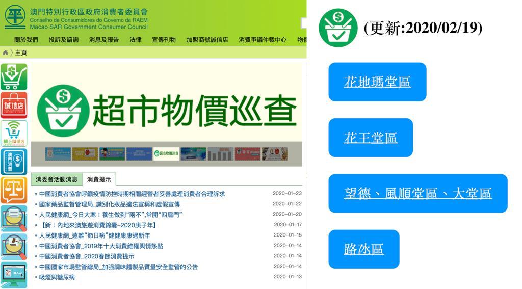 Durante este período de prevenção de epidemias, o abastecimento e os preços em geral no mercado dos produtos domésticos e alimentares mantêm-se estáveis. O Conselho de Consumidores (CC) e a DSE têm fiscalizado o abastecimento e os preços dos materiais de prevenção de epidemia e dos produtos alimentares frescos, principais e suplementares. Desde 25 de Janeiro (1º dia do ano novo chinês) até à presente data, tendo sido realizadas mais de 2000 inspecções aos estabelecimentos comerciais, entre outros, supermercados, farmácias, lojas de quinquilharias, bancas de venda de alimentos, com vista a proteger os direitos e interesses dos consumidores.