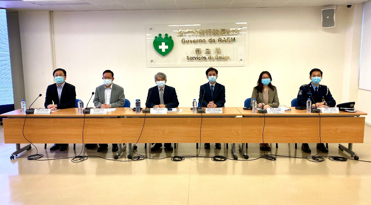 Estiveram presentes na conferência de imprensa do Centro de Coordenação de Contingência do Novo Tipo de Coronavírus : o Director dos Serviços de Saúde, Dr. Lei Chin Ion, o cChefe do Departamento de Estudos e Recursos Educativos destes Serviços, Dr. Wong Kin Mou, a Chefe do Departamento de Licenciamento e Inspecção da Direcção dos Serviços de Turismo, Dr.ª Inês Chan, o Responsável do Centro de Prevenção e Controlo da Doença dos Serviços de Saúde, Dr. Lam Chong, o Chefe da Divisão de Ligação entre Polícia e Comunidade e Relações Públicas, Dr. Lei Tak Fai, e o Coordenador do Serviço de Urgência do Centro Hospitalar Conde de São Januário, Dr. Chang Tam Fei.