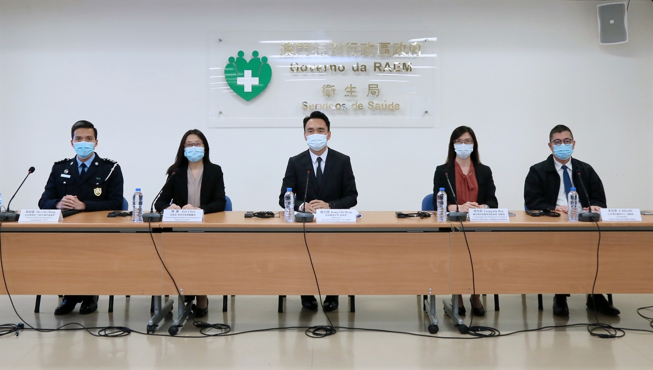 Estiveram presentes na conferencia de imprensa o Subdirector da Direcção dos Serviços de Educação e Juventude, Dr. Kong Chi Meng, a Chefe do Departamento de Licenciamento e Inspecção da Direcção dos Serviços de Turismo, Dr.ª Inês Chan, o Chefe da Divisão de Operações e Comunicações do Corpo de Polícia de Segurança Pública, Dr. Ma Chio Hong, a Coordenadora do Núcleo de prevenção e doenças infecciosas do Centro de Prevenção e Controlo da Doença, Dr.ª Leong Iek Hou, o Coordenador do Centro Clínico de Saúde Pública, Dr. U Sio On.