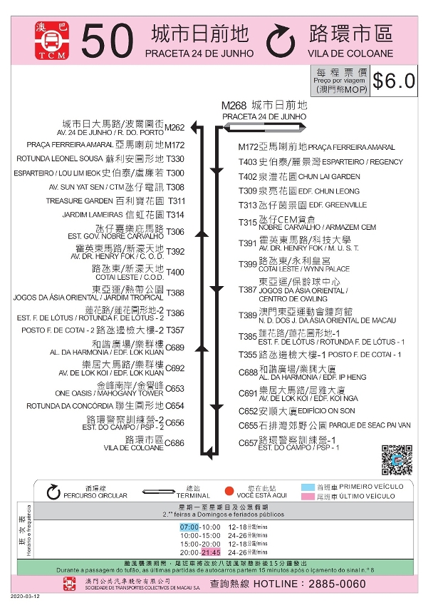 | 22 (para Iao Hon) 25 (para Portas do Cerco) |