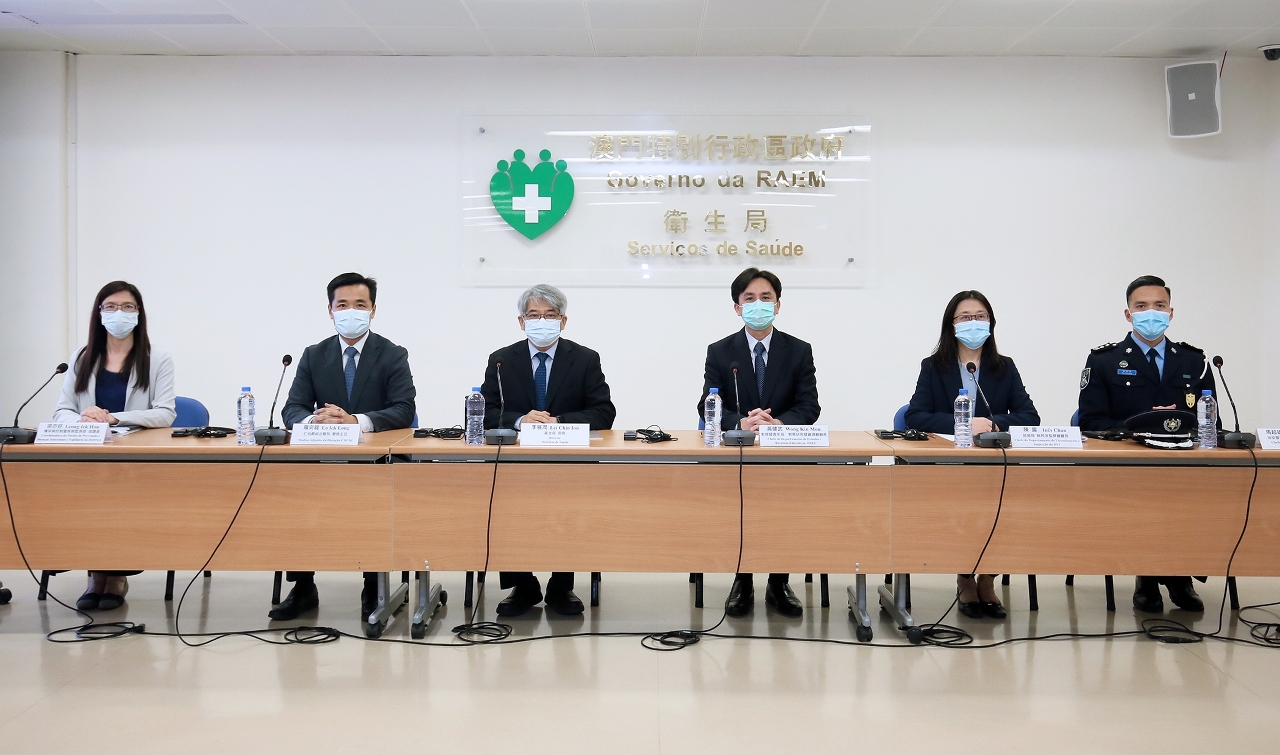 Estiveram presentes na conferência de imprensa o director dos Serviços de Saúde, Dr. Lei Chin Ion, o médico adjunto da Direcção do CHCSJ, Dr. Lo Iek Long, o chefe do Departamento de Estudos e Recursos Educativos da DSEJ, Wong Kin Mou, a chefe do Departamento de Licenciamento e Inspecção da Direcção dos Serviços de Turismo, Dra. Inês Chan, o Chefe da Divisão de Operações e Comunicações do Corpo de Polícia de Segurança Pública, Dr. Ma Chio Hong e a coordenadora do Centro de Prevenção e Controlo da doença, Dra. Leong Iek Hou.
