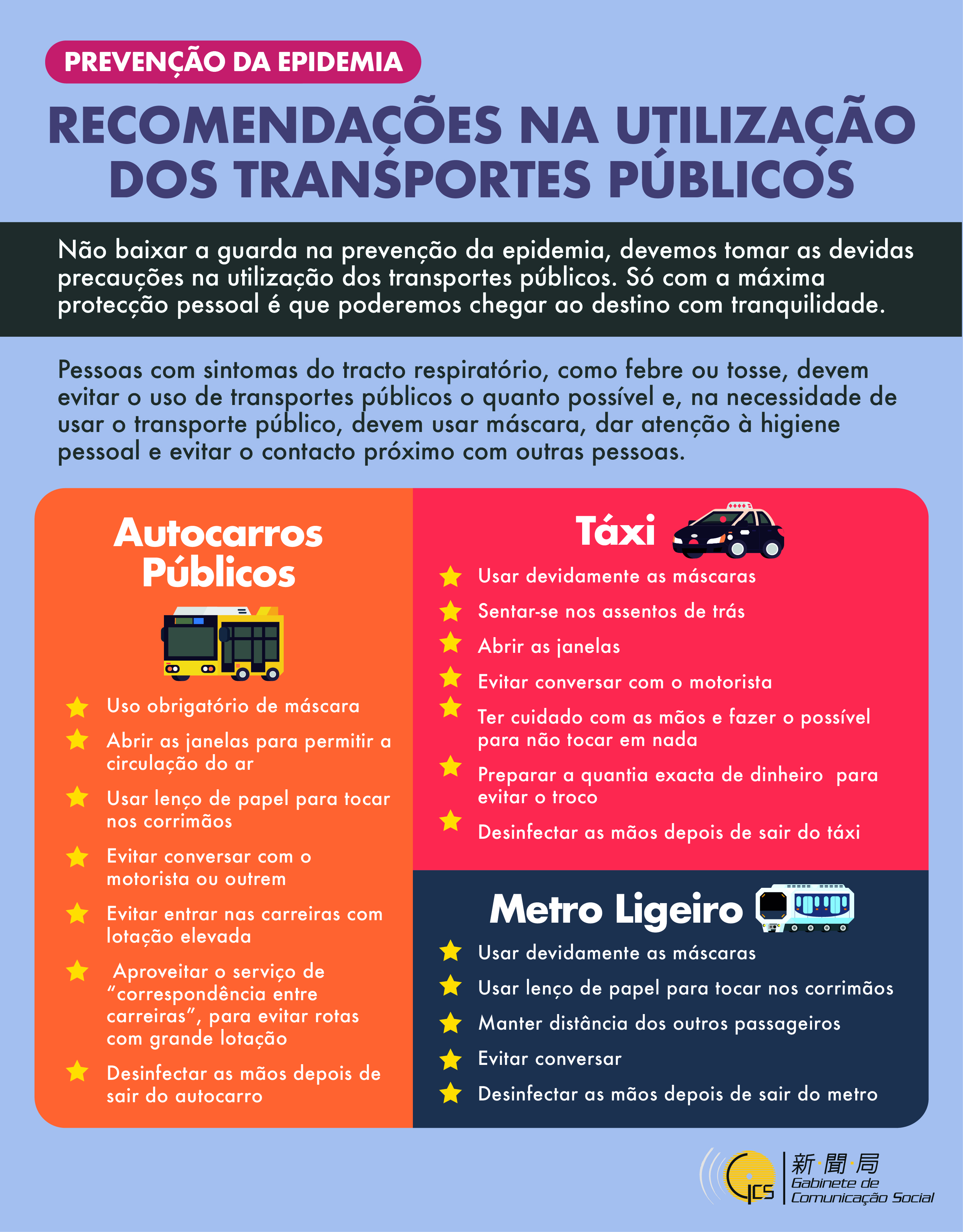 • Prevenção da Epidemia – Recomendações na Utilização dos Transportes Públicos
