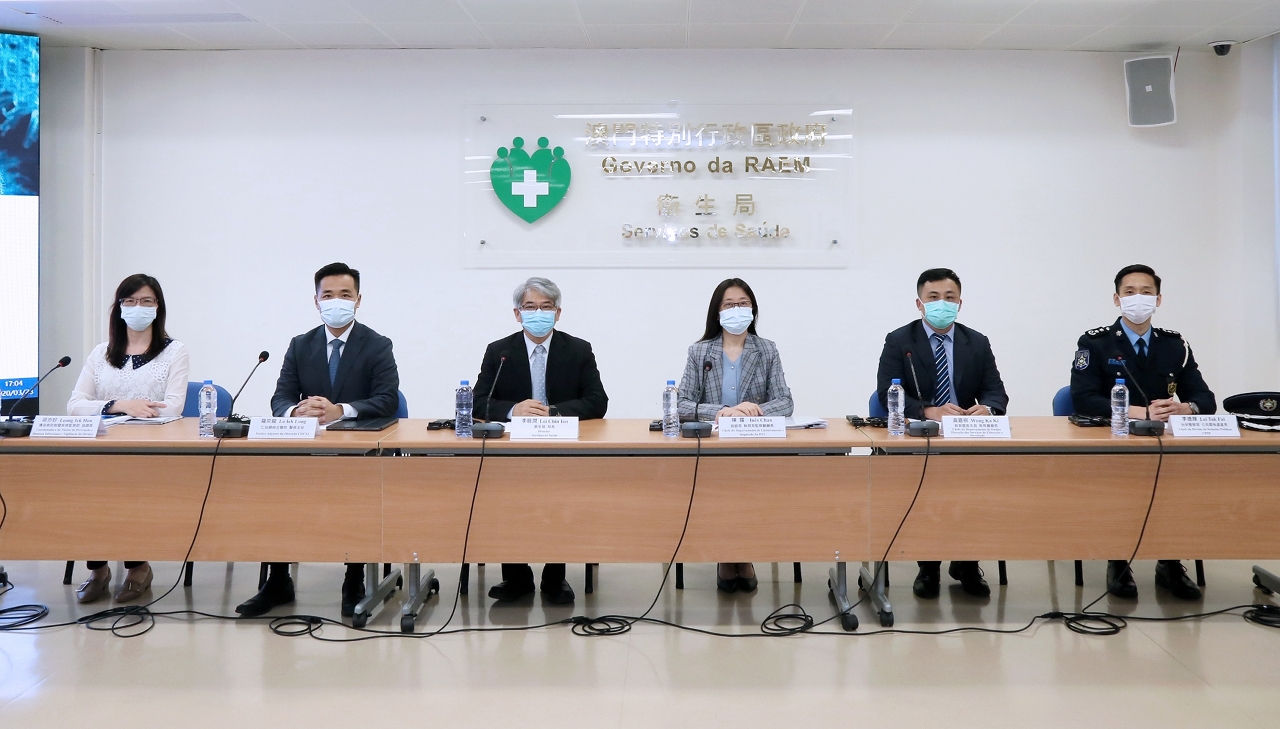 Estiveram presentes na conferencia de imprensa o Director dos Serviços de Saúde, Dr. Lei Chin Ion, o Médico Adjunto da Direcção do CHCSJ, Dr. Lo Iek Long, a Chefe do Departamento de Licenciamento e Inspecção da Direcção dos Serviços de Turismo, Dra. Inês Chan, o Chefe do Departamento de Ensino da DSEJ, Dr. Wong Ka Ki, o Chefe da Divisão de Ligação entre Polícia e Comunidade e Relações Públicas, Dr. Lei Tak Fai e a Coordenadora do Núcleo de prevenção e doenças infecciosas e vigilância da doença do Centro de Prevenção e Controlo de Doenças dos Serviços de Saúde, Dra. Leong Iek Hou.