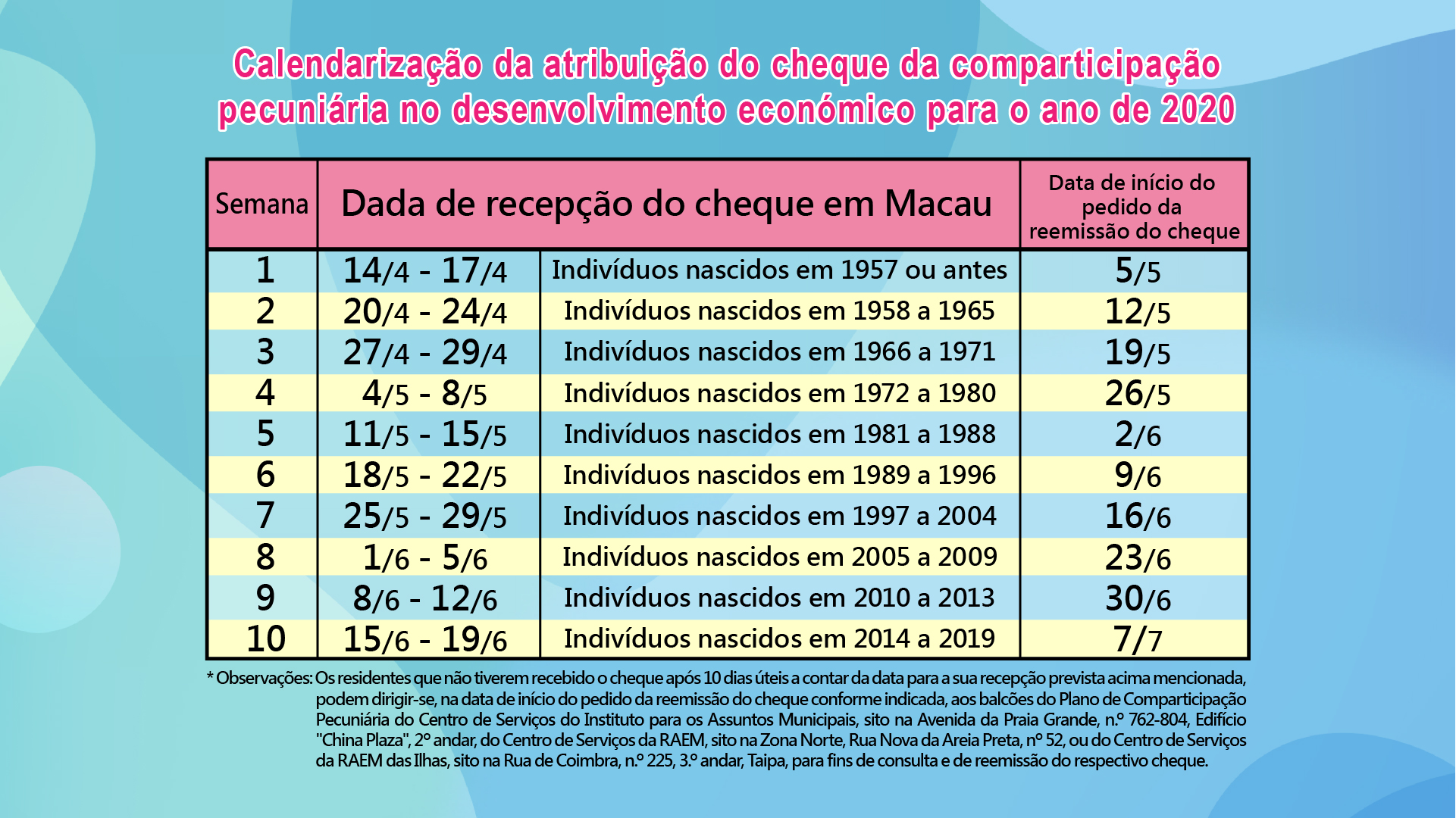 Atribuiu-se, hoje dia 1 de Abril, o montante do Plano, podendo os residentes permanentes e os residentes não permanentes de Macau receber 10 000 patacas e 6 000 patacas, respectivamente. A população pode visualizar/ consultar as informações mais actualizadas relativas ao Plano, através dos seguintes meios: