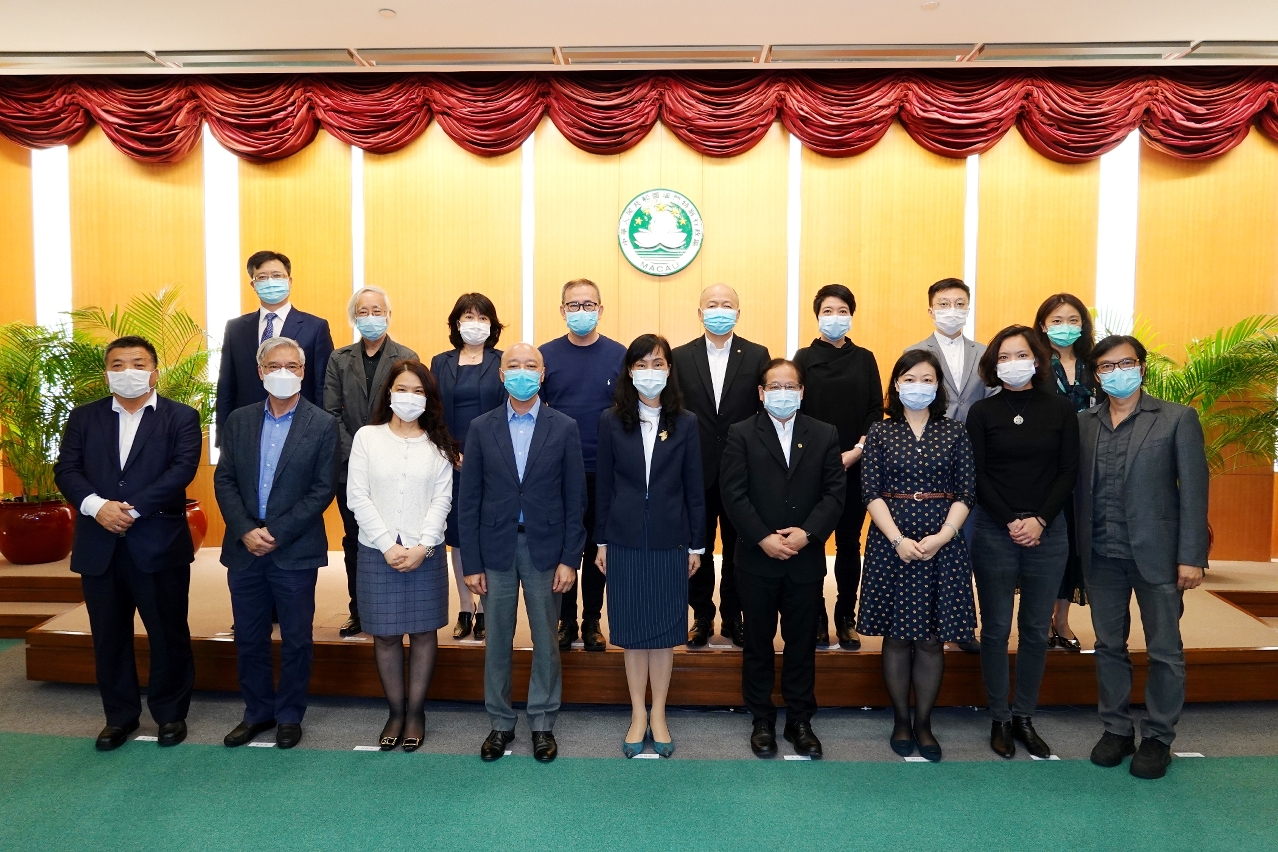 A Secretária para os Assuntos Sociais e Cultura, Ao Ieong U, reuniu-se, há dias, na sede do Governo, com associações cívicas das áreas de artes visuais, protecção de património cultural, artes de espectáculos e do sector cultural e criativo. Nos encontros, foram trocadas opiniões sobre diversos temas, nomeadamente, a situação epidemiológica da pneumonia causada pelo novo tipo de coronavírus e o desenvolvimento artístico-cultural no futuro, para além de ouvir as sugestões das referidas associações sobre as acções governativas.
