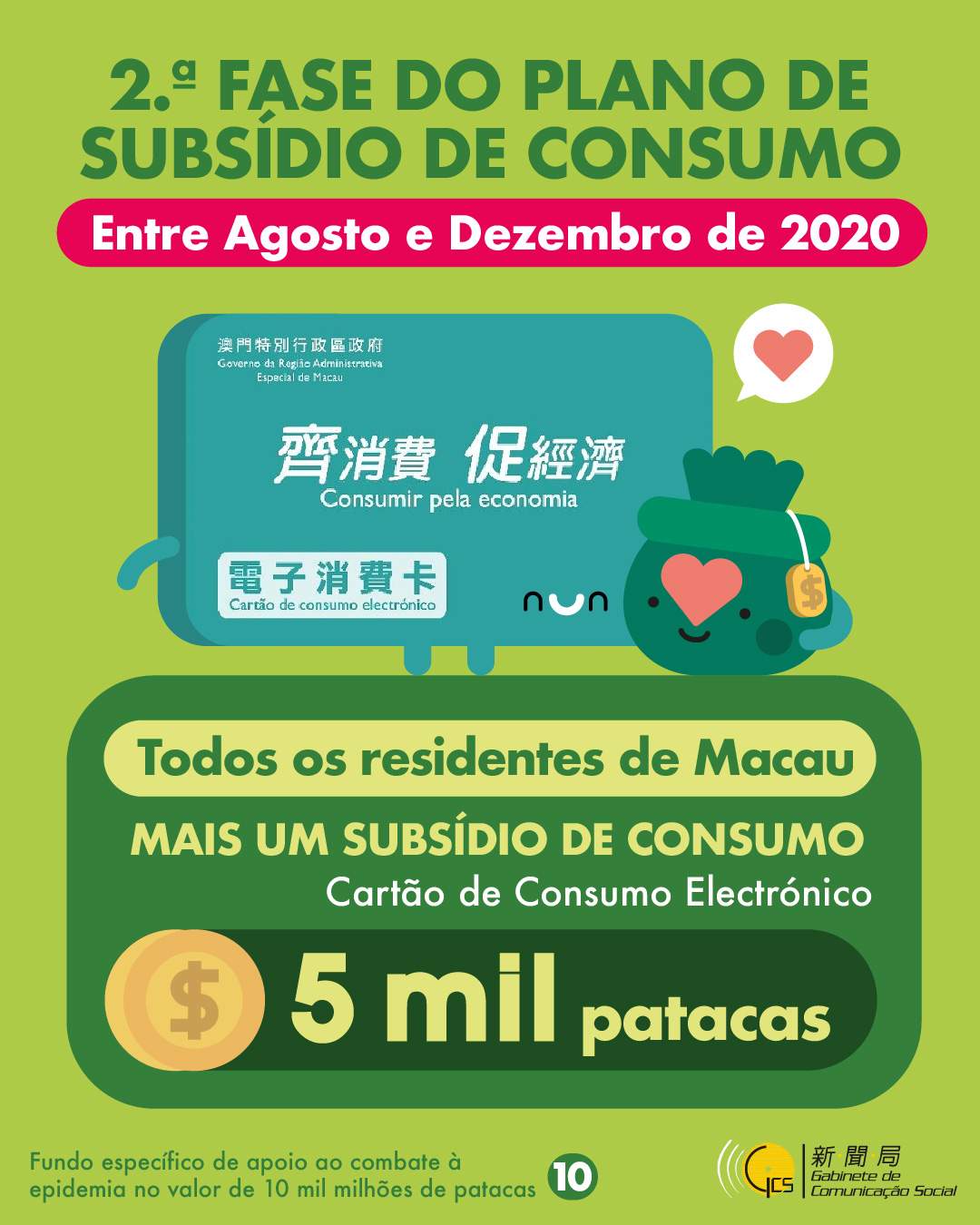 Infografia: Fundo específico de apoio ao combate à epidemia no valor de 10 mil milhões de patacas