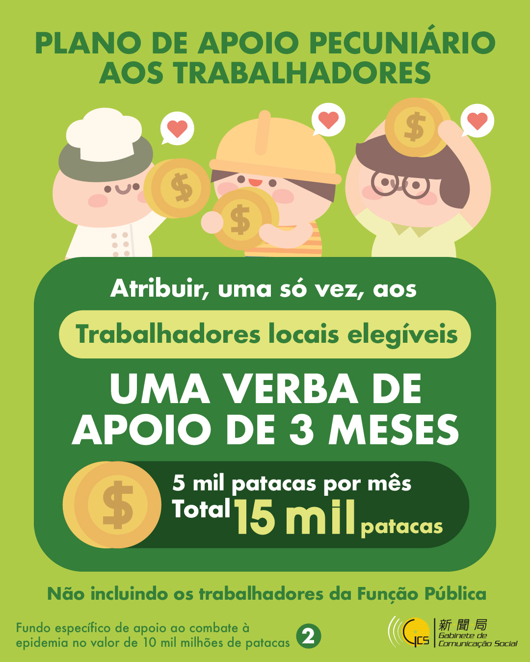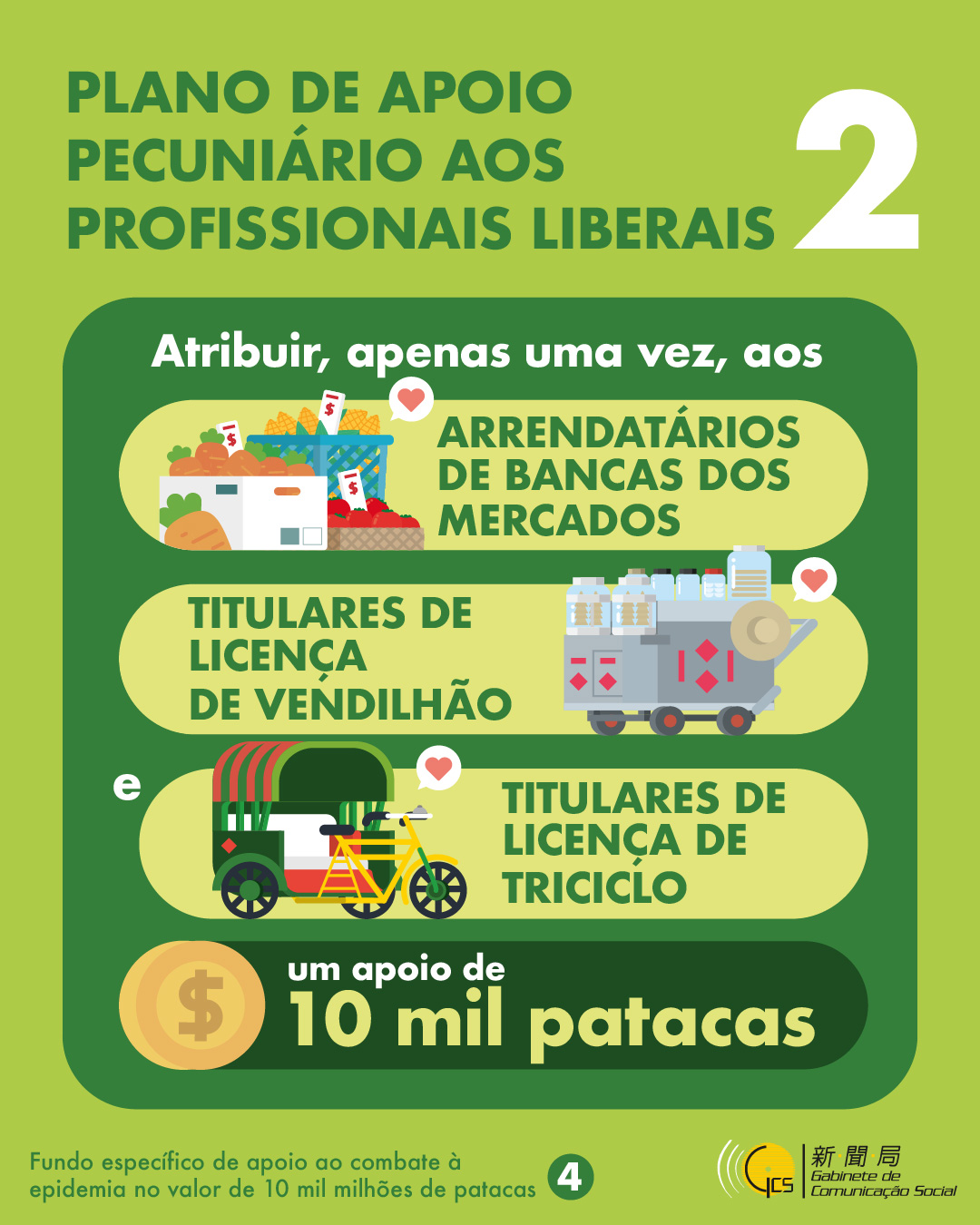 • Infografia: Fundo específico de apoio ao combate à epidemia no valor de 10 mil milhões de patacas