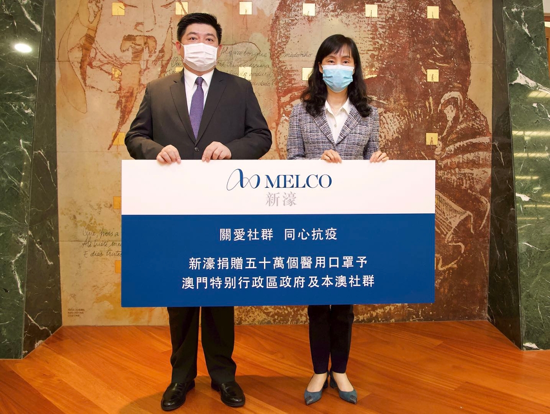 A Secretária para os Assuntos Sociais e Cultura, Ao Ieong U, recebeu hoje (dia 14), em representação do Governo da RAEM, 500 mil máscaras doadas pela Melco Resorts & Entertainment Ltd..