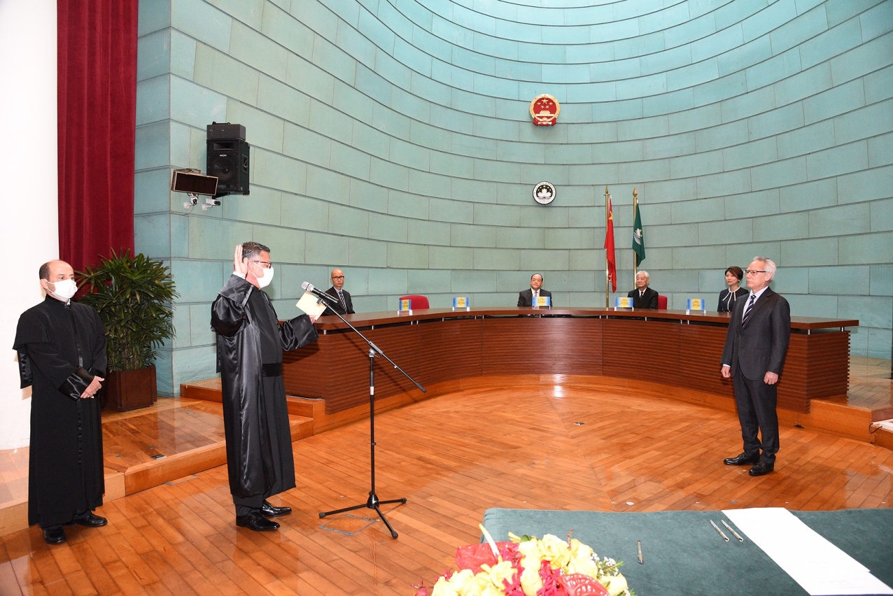 A 12 de Maio de 2020, pelas 12H00, foi realizada a cerimónia de tomada de posse na Sala de Audiência n.º 1 do Edifício dos Tribunais de Segunda e Última Instâncias, na qual os dois Juízes prestaram juramento de posse perante o Presidente do Tribunal de Última Instância, Dr. Sam Hou Fai, que presidiu à cerimónia, e a esse evento compareceram como convidados de honra o Chefe do Executivo, Ho Iat Seng, o Presidente da Comissão Independente para a Indigitação de Juízes, Lau Cheok Va, o Presidente do Tribunal de Segunda Instância, Dr. Lai Kin Hong, e a Presidente dos Tribunais de Primeira Instância, Dr.ª Io Weng San. Além disso, o Secretário para a Administração e Justiça, o Procurador, o Comissário do CCAC, os membros da Comissão Independente para a Indigitação de Juízes, os membros do Conselho dos Magistrados Judiciais, o Presidente da Associação dos Advogados de Macau, os Juízes dos tribunais das várias instâncias e os Delegados do Procurador, os dirigentes dos demais Serviços, entre outros convidados, e os trabalhadores dos tribunais também presenciaram e testemunharam a tomada de posse dos dois Juízes.