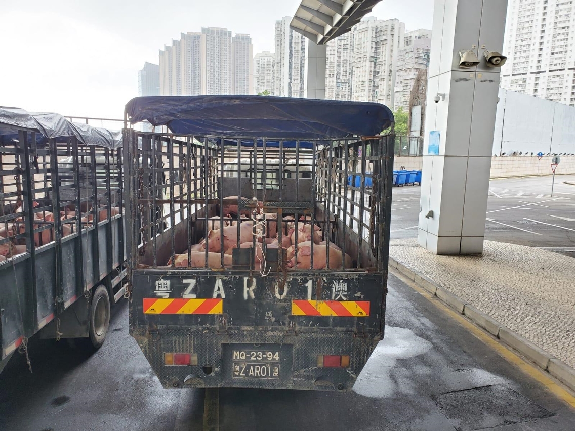 O Governo da RAEM atribui grande importância ao intuito de que seja assegurado o regular fornecimento da carne suína fresca a Macau, pelo que, após o surto da peste suína no Interior da China, apoiou a Sociedade Nam Kuong e a Sociedade Nam Yue, na procura de meios para aumentar o fornecimento de porcos vivos a Macau. A construção, em Doumen, de um ponto de trânsito de animais vivos suscitou forte empenho por parte dos respectivos serviços do Interior da China e revelou-se um decisivo contributo. De salientar que os trabalhos de recepção e de acompanhamento do ponto de trânsito, efectuados pessoalmente pelo dirigente dos Serviços de Alfândega de Gongbei, permitem garantir que a entrada em funcionamento se efectue de acordo com o plano previamente definido, desempenhando um papel preponderante na garantia de um consistente sistema de regular fornecimento de produtos alimentares frescos a Macau.