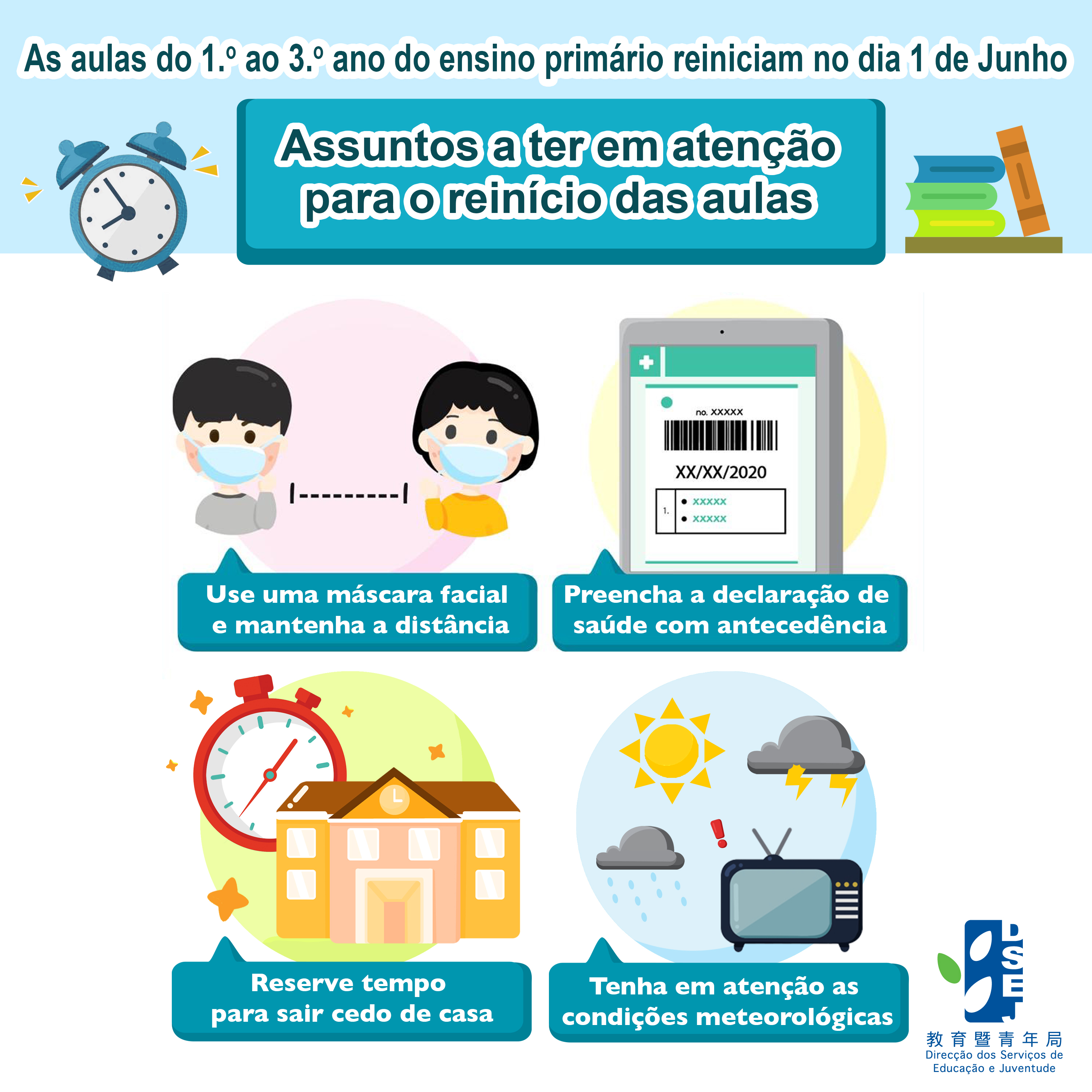 • 【As aulas do 1.o ao 3.o ano do ensino primário reiniciam no dia 1 de Junho】 Assuntos a ter em atenção para o reinício das aulas