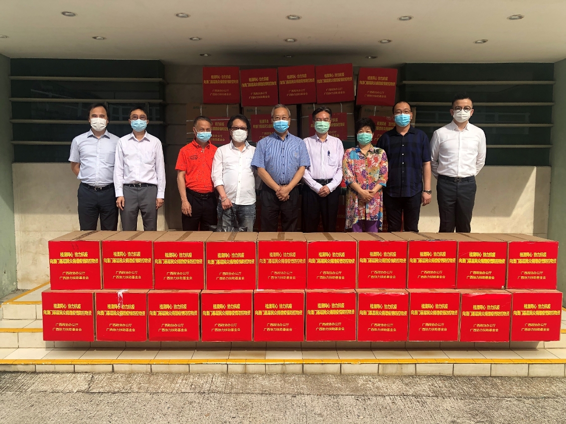 Dado o carinho especial que o presidente da Conferência Consultiva Política da Região Autónoma de Guangxi Zhuang, Sr. Lantian Li, tem pelos seus compatriotas de Macau, o Escritório Geral da Conferência Consultiva Política de Guangxi e o Fundo de Apoio Colaborativo de Guangxi adquiriram 100.000 máscaras para oferta à Associação Geral de Amizade dos Delegados da Conferência Consultiva Política de Guangxi em Macau e à Associação Geral dos Conterrâneos e Amigos da Província de Guangxi em Macau. Hoje (dia 29), as duas associações entregaram essas 100.000 máscaras ao Governo da RAEM, as quais foram recebidas pelos Serviços de Saúde, em representação do Governo da RAEM. As máscaras serão usadas pelo Governo da RAEM nas medidas de combate à epidemia.