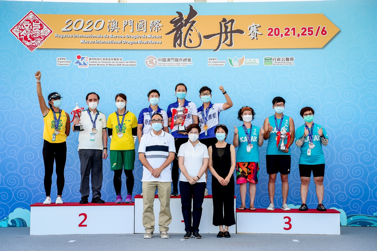 As “Regatas Internacionais de Barcos-Dragão de Macau 2020”, organizadas pelo Instituto do Desporto e pela Associação de Barcos de Dragão de Macau, China, e co-organizadas pelo Instituto para os Assuntos Municipais e pela Direcção dos Serviços de Administração e Função Pública, tiveram lugar hoje (21) no Centro Náutico da Praia Grande. Hoje (21) realizaram-se as provas para Pequenas Embarcações. Suncity Legend venceu na Regata de Barcos-Dragão em Pequenas Embarcações – Categoria Open 200m.