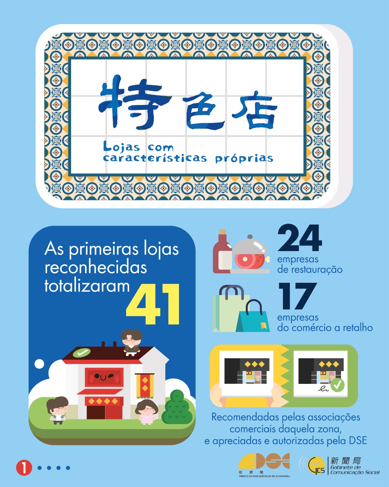 Lançou-se hoje (dia 3), o Plano das Lojas com Características Próprias de Macau, e as primeiras lojas reconhecidas como lojas locais com características próprias totalizaram 41, sendo 24 empresas do sector da restauração e 17 empresas do comércio a retalho, todas recomendadas pelas associações comerciais regionais e apreciadas e aprovadas pela Direcção dos Serviços de Economia (DSE). As relativas informações encontram-se disponíveis na página exclusiva do “Plano das Lojas com Características Próprias” da DSE, onde os interessados serão bem-vindos a visualizá-las.