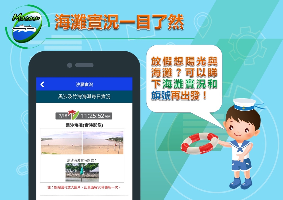 Para celebrar o Dia da DSAMA em 18 de Julho, a Direcção dos Serviços de Assuntos Marítimos e de Água (DSAMA) lançou a nova aplicação móvel “Informação Marítima de Macau”, na qual estão integradas as informações em tempo real sobre carreiras marítimas, praias, tráfego marítimo, para permitir aos cidadãos, turistas e sector marítimo obter todas as informações marítimas mediante smartphone.