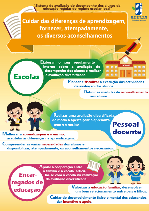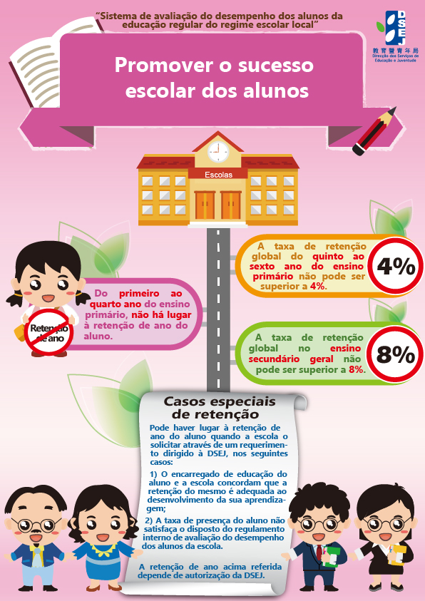 Para assegurar o interesse dos alunos, e tendo em consideração as necessidades reais, o diploma legal prevê a possibilidade de as escolas pedirem autorização para realizarem retenções em situações especiais, junto da DSEJ, caso a escola e os encarregados de educação concordem com a retenção de ano do aluno, por isso corresponder ao desenvolvimento efectivo das suas aprendizagens ou na eventualidade da assiduidade do aluno não satisfazer o disposto no regulamento interno da avaliação do desempenho dos alunos. Além disso, o diploma legal estabelece, também, as disposições relativas ao “Tratamento dos casos de falta do aluno à avaliação”, à “Antecipação da transição de ano” e à “Responsabilidade das escolas, do pessoal docente e dos encarregados de educação”, entre outros.