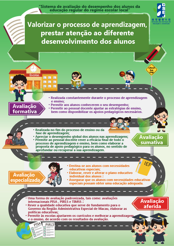 Para concretizar o disposto no Artigo 25.°, da Lei n.° 9/2006 (Lei de Bases do Sistema Educativo Não Superior), o Governo tem vindo, ao longo dos anos, a impulsionar os trabalhos legislativos do regulamento administrativo do “Sistema de avaliação do desempenho dos alunos”, tendo realizado, em 2016, uma consulta pública do Regulamento Administrativo e publicado, em 2017, o seu relatório final. Foram efectuadas, entretanto, duas rondas de visitas às escolas e o estabelecimento do Regulamento Administrativo teve por base a recolha e síntese das opiniões dos diversos sectores da sociedade.