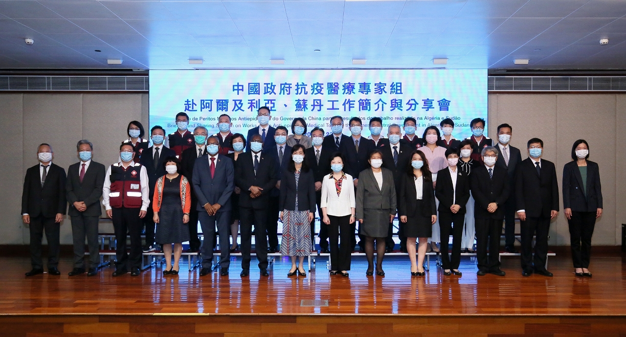 No seu discurso, a Secretária para os Assuntos Sociais e Cultura da RAEM, Dr.a Elsie Ao Ieong U, mencionou que por iniciativa do nosso país, a República Popular da China, a RAEM teve uma grande oportunidade para participar pela primeira vez numa equipa de assistência internacional e no âmbito da Equipa Internacional de Emergência Médica da China (RAEM) foram destacados cinco (5) membros para participar do Grupo de Peritos Médicos antiepidémico daChina que efectuaram uma missão, na Argélia e no Sudão, para desenvolver o apoio ao trabalho relacionado com a pneumonia causada pelo novo tipo de coronavírus.