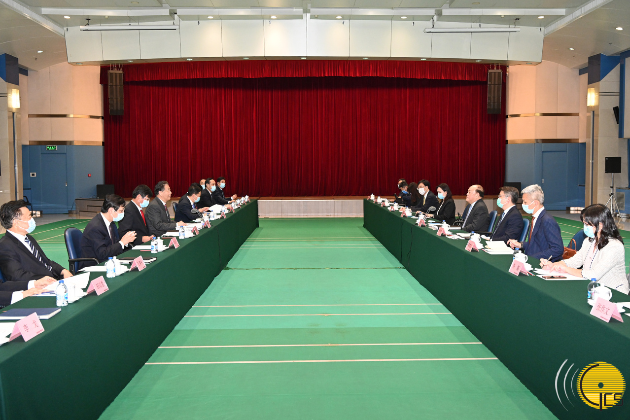 Estiveram também presentes no encontro, o secretário para a Economia e Finanças, Lei Wai Nong, a chefe do Gabinete do Chefe do Executivo, Hoi Lai Fong, o director dos Serviços de Economia, Tai Kin Ip, o presidente do Conselho de Administração da Autoridade Monetária de Macau, Chan Sau San, e a directora do Gabinete de Comunicação Social, Inês Chan. Da parte do Ministério dos Recursos Hídricos, o vice-ministro, Ye Jianchun, o engenheiro geral, Liu Weiping, o chefe do gabinete, Geng Liucheng, entre outros.