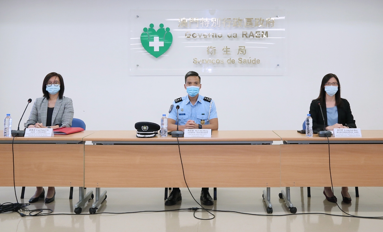 Estiveram presentes na conferência de imprensa o Chefe da Divisão de Operações e Comunicações do Corpo de Polícia de Segurança Pública, Dr. Ma Chio Hong, a Chefe da Divisão de Relações Públicas da Direcção dos Serviços de Turismo, Dr.ª Lau Fong Chi, e a Coordenadora do Centro de Prevenção e Controlo da Doença, Dr.ª Leong Iek Hou.