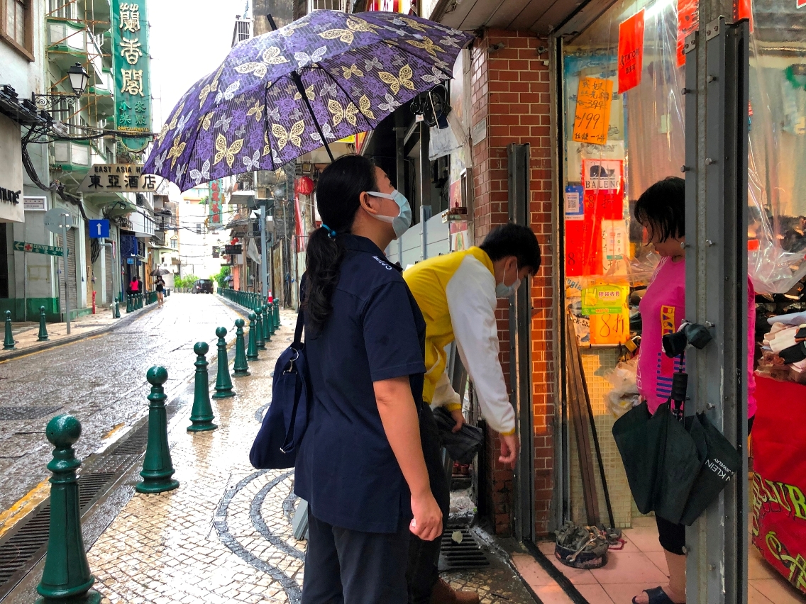 O pessoal da Direcção dos Serviços de Economia (DSE) e do Centro de Produtividade e Transferência de Tecnologia de Macau (CPTTM) deslocou-se hoje (dia 19) à tarde a zona do Porto Interior e da Rua de Cinco de Outubro no sentido de saber junto de lojistas da zona o impacto provocado pelas inundações e os efeitos de equipamentos contra inundações.