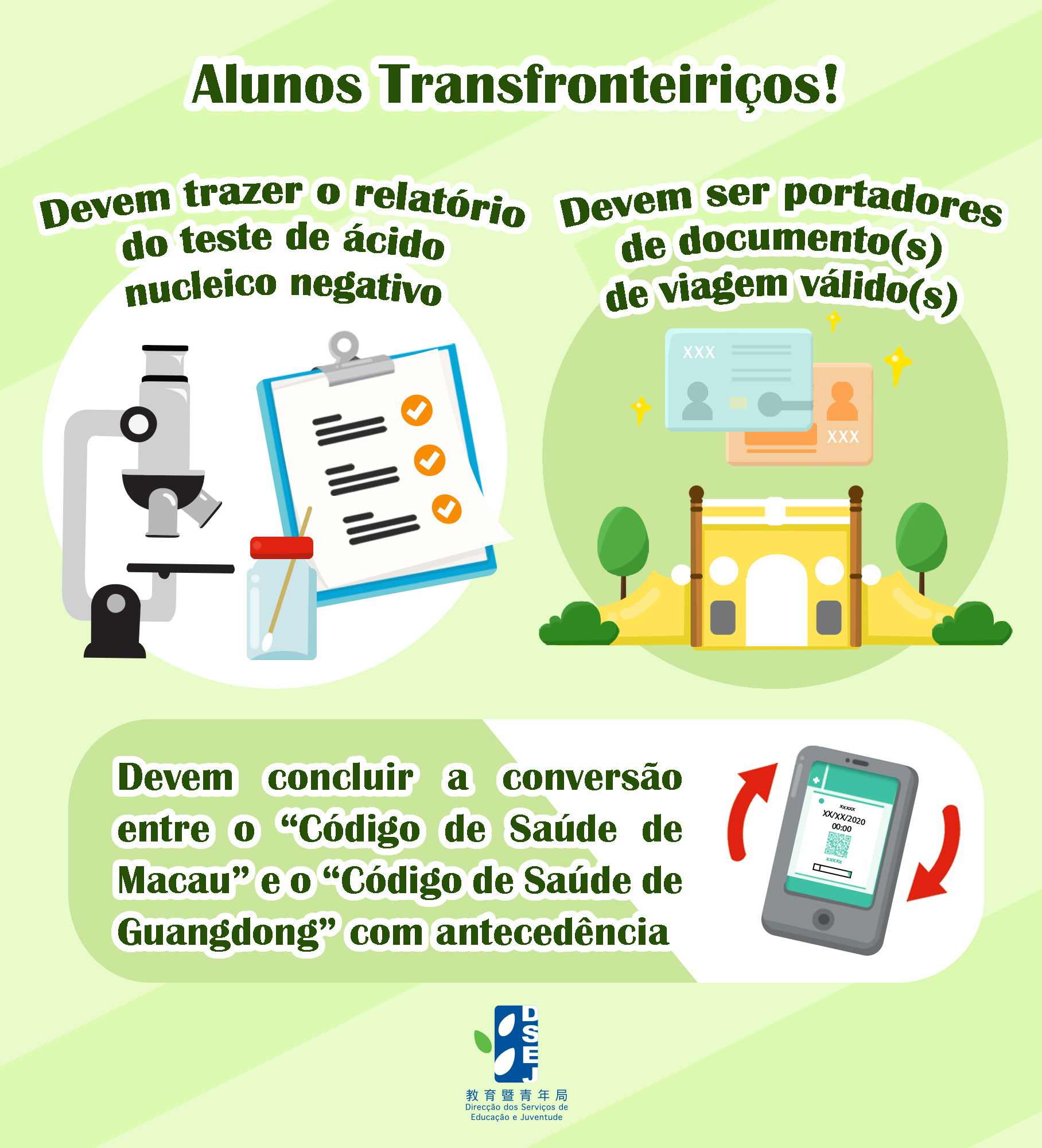 O novo ano lectivo está a aproximar-se e as escolas dos ensinos infantil, primário, secundário e especial de Macau iniciarão as suas aulas em princípios de Setembro, com horários diferenciados. A Direcção dos Serviços de Educação e Juventude (DSEJ) apela aos pais/encarregados de educação para prestarem atenção às medidas preventivas da epidemia do Governo da RAEM, ao trânsito, ao tempo e às condições físicas dos seus educandos, transmitindo-lhes conhecimentos sobre a prevenção da epidemia, bem como, a importância de manterem bons hábitos de higiene. Os alunos transfronteiriços devem também ter em atenção as medidas de migração e concluir, atempadamente, o teste do ácido nucleico, para uma boa preparação do início das aulas. Para assegurar que o início do novo ano lectivo decorra sem sobressaltos, a DSEJ vai enviar pessoal às escolas, no primeiro dia do início das aulas, para se inteirar da situação.