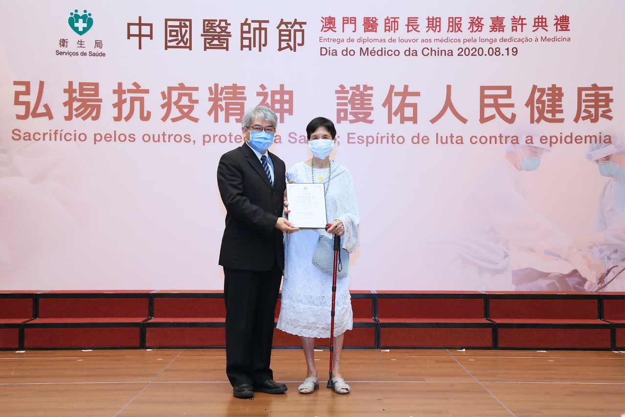 Com o intuito de reconhecer os médicos que têm exercido funções durante mais de meio século, bem como louvar o trabalho médico discreto, incansável, demonstrando sempre com espírito de zelo e sacrifício, o governo da RAEM atribuiu o “Diploma de louvor especial” a 22 médicos com mais de 50 anos de prestação de serviços, entre os quais, há um médico que exerce a profissão há mais de 62 anos; por sua vez, 31 médicos receberam o “Diploma louvor de serviços” que têm uma antiguidade superior aos 30 anos.