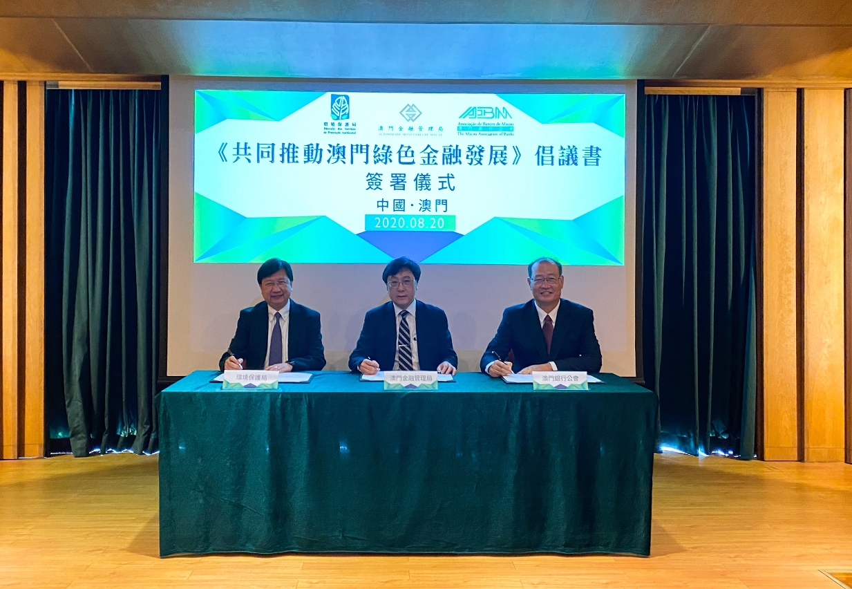 A Autoridade Monetária de Macau (AMCM), a Direcção dos Serviços de Protecção Ambiental (DSPA) e a Associação de Bancos de Macau (ABM) assinaram hoje (dia 20) uma proposta intitulada “Promover conjuntamente o desenvolvimento das finanças verdes de Macau” (adiante designado por “Proposta”), que visa apoiar a economia de Macau no sentido do avanço para um desenvolvimento diversificado, verde e sustentável, elevando a competitividade e atratividade dos produtos financeiros locais nos mercados da Grande Baía de Guangdong-Hong Kong-Macau e nos mercados internacionais.