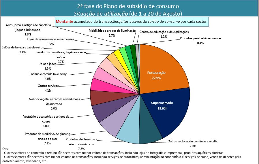 O cartão de consumo da 2ª fase começou a ser utilizado a partir do dia 1 de Agosto. Até 20 de Agosto, mais de 610 mil cartões de consumo já foram carregados, ocupando 98% dos cartões levantados na 1ª fase (624 mil cartões), e com os mais de 19 mil novos cartões levantados, cerca de 630 mil residentes já receberam o subsídio de consumo da 2ª fase.