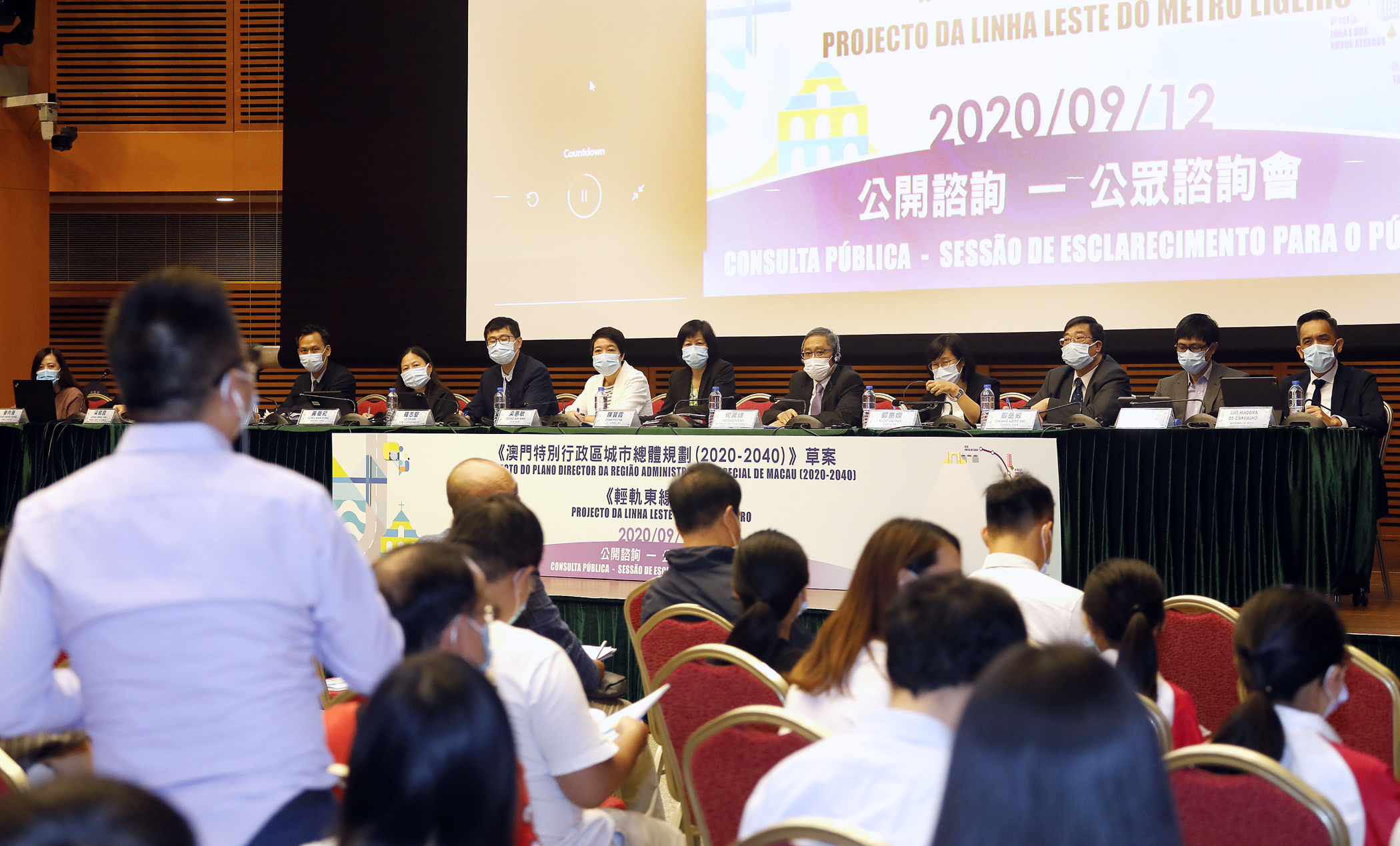 Realizou-se, hoje (12), a 1.a sessão de consulta pública no Centro de Ciência de Macau, a qual contou com a participação de 200 cidadãos que apresentaram principalmente opiniões sobre o uso dos terrenos das zonas habitacional e comercial proposto no respectivo projecto do plano, a melhoria da protecção ambiental, o aumento de áreas destinadas às zonas verde e ecológica, a prevenção e redução de desastres, o planeamento do trânsito, o planeamento do metro ligeiro e calendário para a sua construção. Estiveram presentes os membros da Comissão Interdepartamental criada nos termos do disposto do artigo 5.º do Regulamento Administrativo n.º 5/2014, os representantes da MLM e as equipas de estudo dos respectivos projectos.