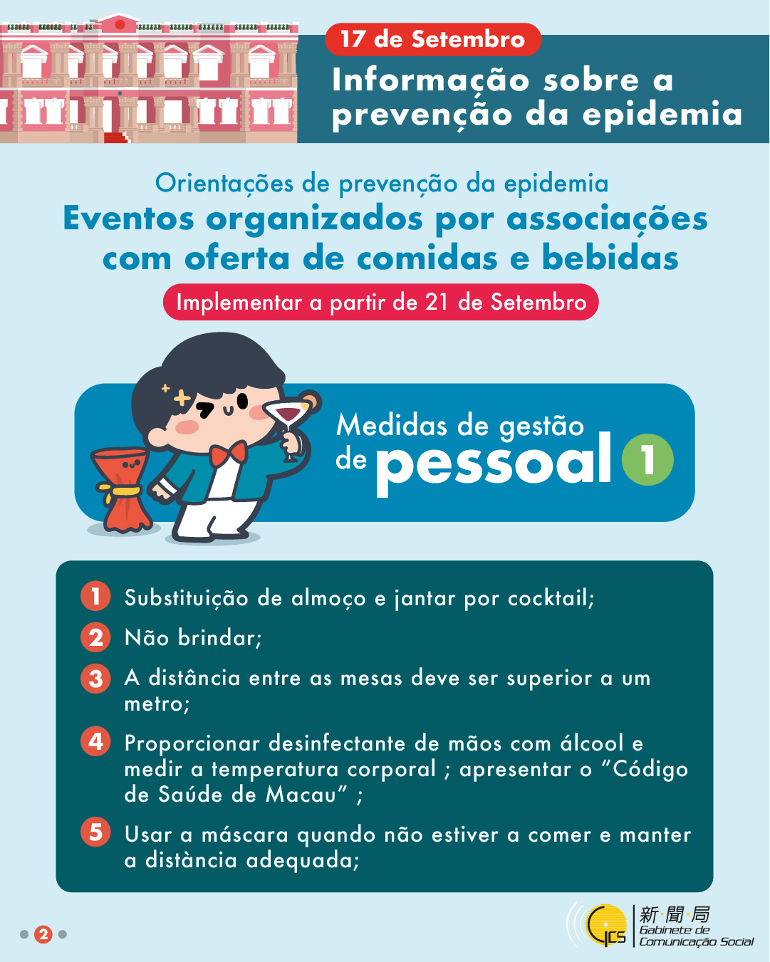 • Orientações de prevenção da epidemia : eventos organizados por associações com oferta de comidas e bebidas (medidas de gestão de pessoal 2 )