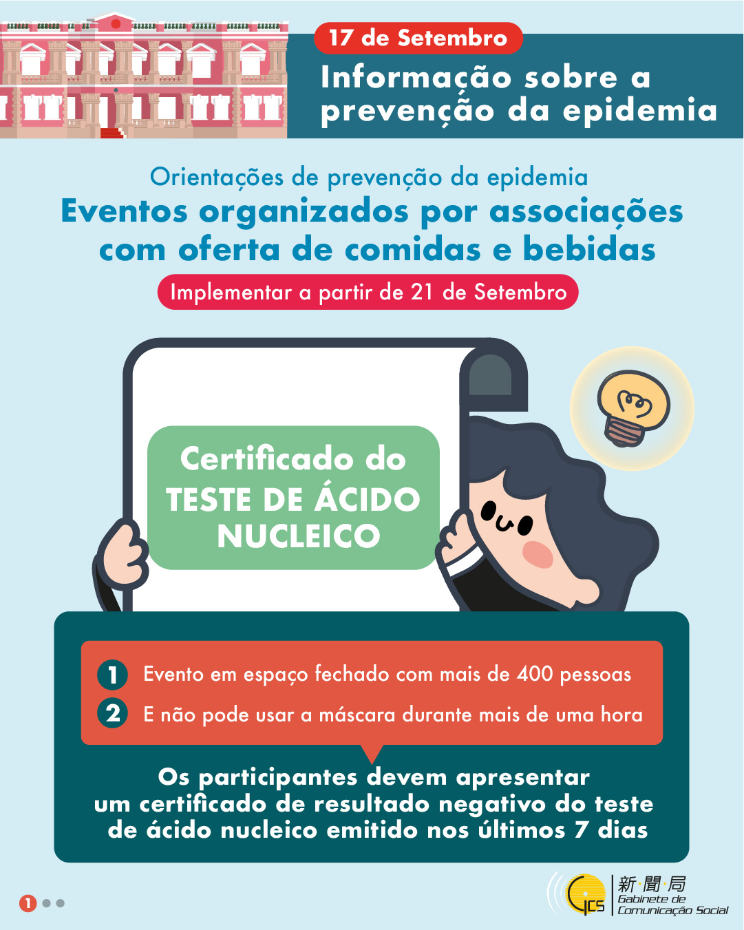 • Orientações de prevenção da epidemia : eventos organizados por associações com oferta de comidas e bebidas (certificado do teste de ácido nucleico)
