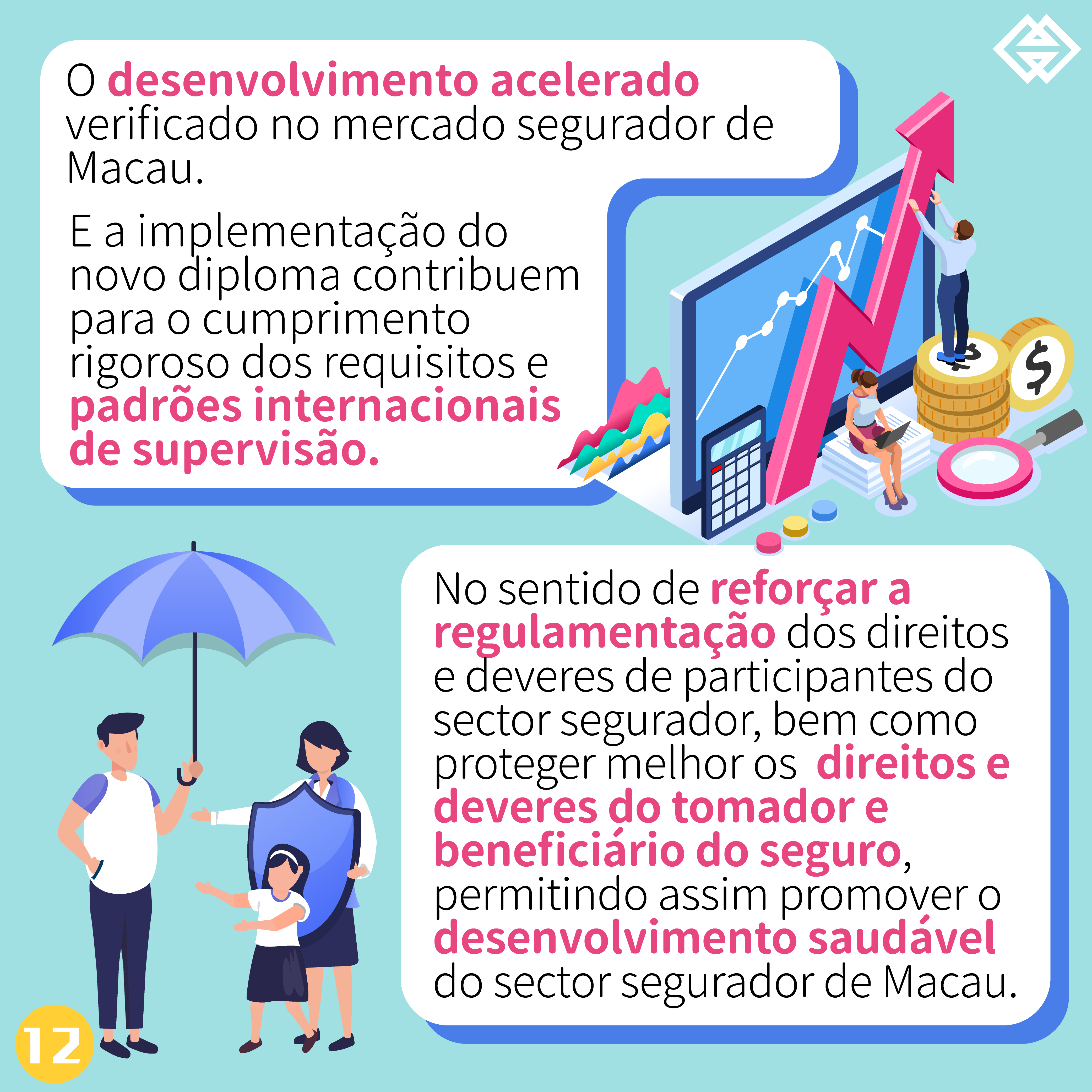 Tendo em atenção o desenvolvimento acelerado do mercado segurador de Macau, a Autoridade Monetária de Macau (AMCM) acredita que com a implementação do novo diploma legal, os requisitos dos padrões internacionais de supervisão possam ser cumpridos, nomeadamente no que respeita ao reforço de regularização dos direitos e deveres de participantes do sector segurador, bem como à melhor protecção dos direitos e deveres do tomador e beneficiário do seguro, permitindo assim promover o desenvolvimento saudável do sector segurador de Macau. As informações pormenorizadas do “Regime jurídico da actividade seguradora” poderão ser consultadas na página electrónica da AMCM (https://www.amcm.gov.mo/zh/insurance-sector/rules-and-guidelines).
