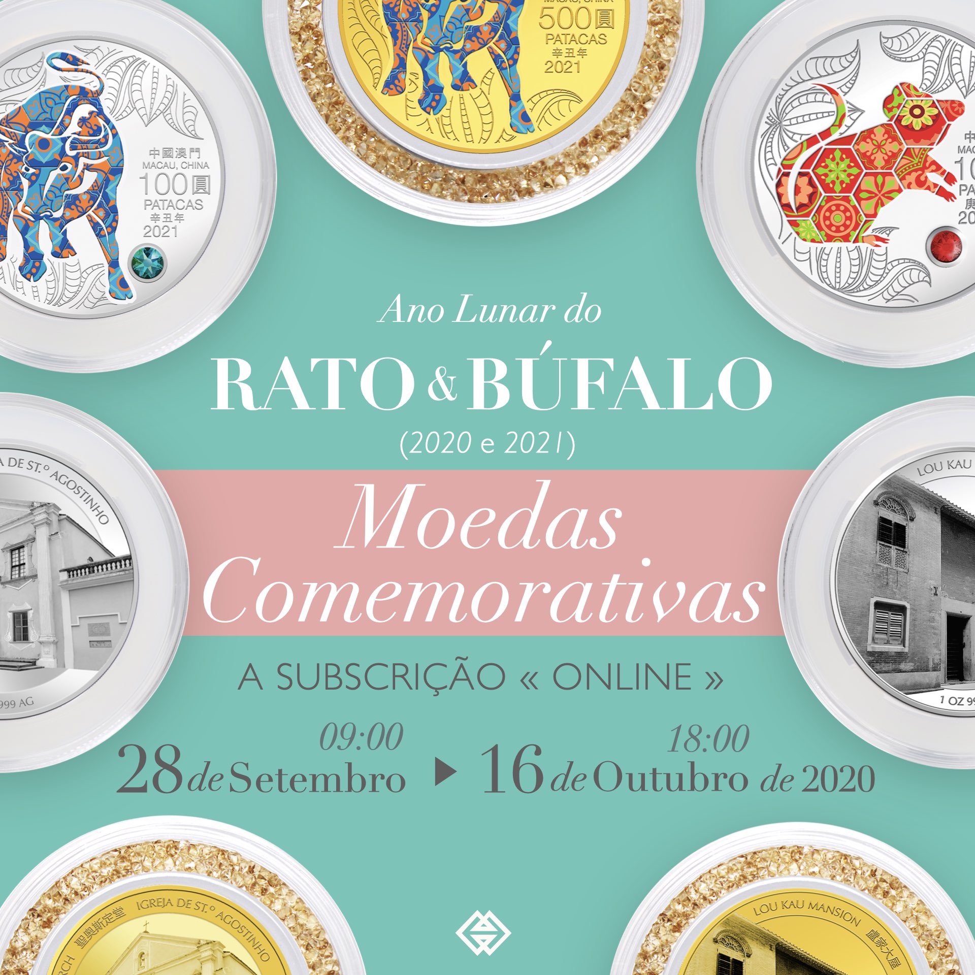 A Autoridade Monetária de Macau (AMCM) lançará, em breve, uma nova série de moedas comemorativas dos Anos Novos Lunares, entre as quais as moedas comemorativas do Ano Lunar do Rato (2020) e do Ano Lunar do Búfalo (2021), as quais poderão ser subscritas “online” a partir da próxima segunda-feira (dia 28).