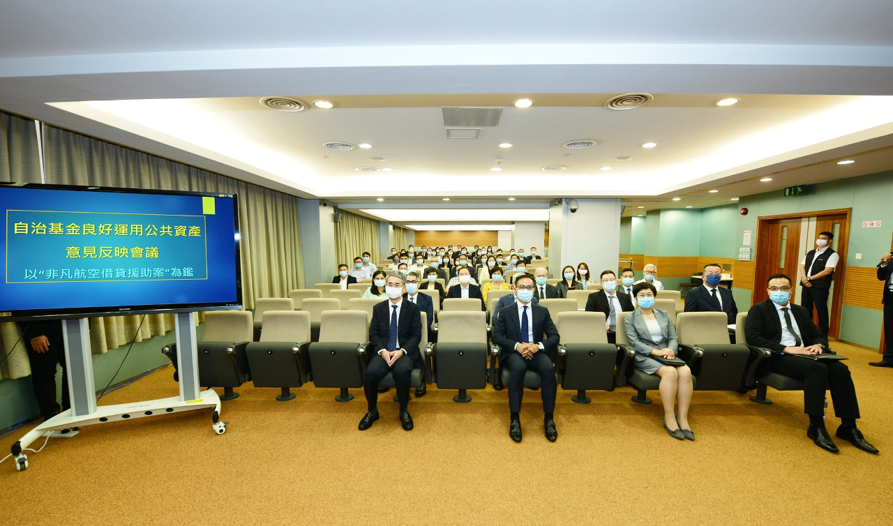 O secretário para a Administração e Justiça, André Cheong, participou no encontro e revelou que o Governo da Região Administrativa Especial de Macau (RAEM) dá grande importância ao relatório do CCAC e acrescentou que o Chefe do Executivo emitiu instruções às entidades gestoras de fundos públicos para estudarem o relatório com seriedade e procederem com o trabalho de auto-verificação abrangente ao contraste dos problemas revelados e às sugestões apresentadas no relatório. Afirmou ainda que estes devem apresentar medidas corretivas e preventivas para as questões encontradas, bem como, melhorar e aperfeiçoar os diplomas legais e o regime de apreciação e aprovação de apoio financeiro, por forma a assegurar o uso razoável e adequado do erário público nos termos legais.
